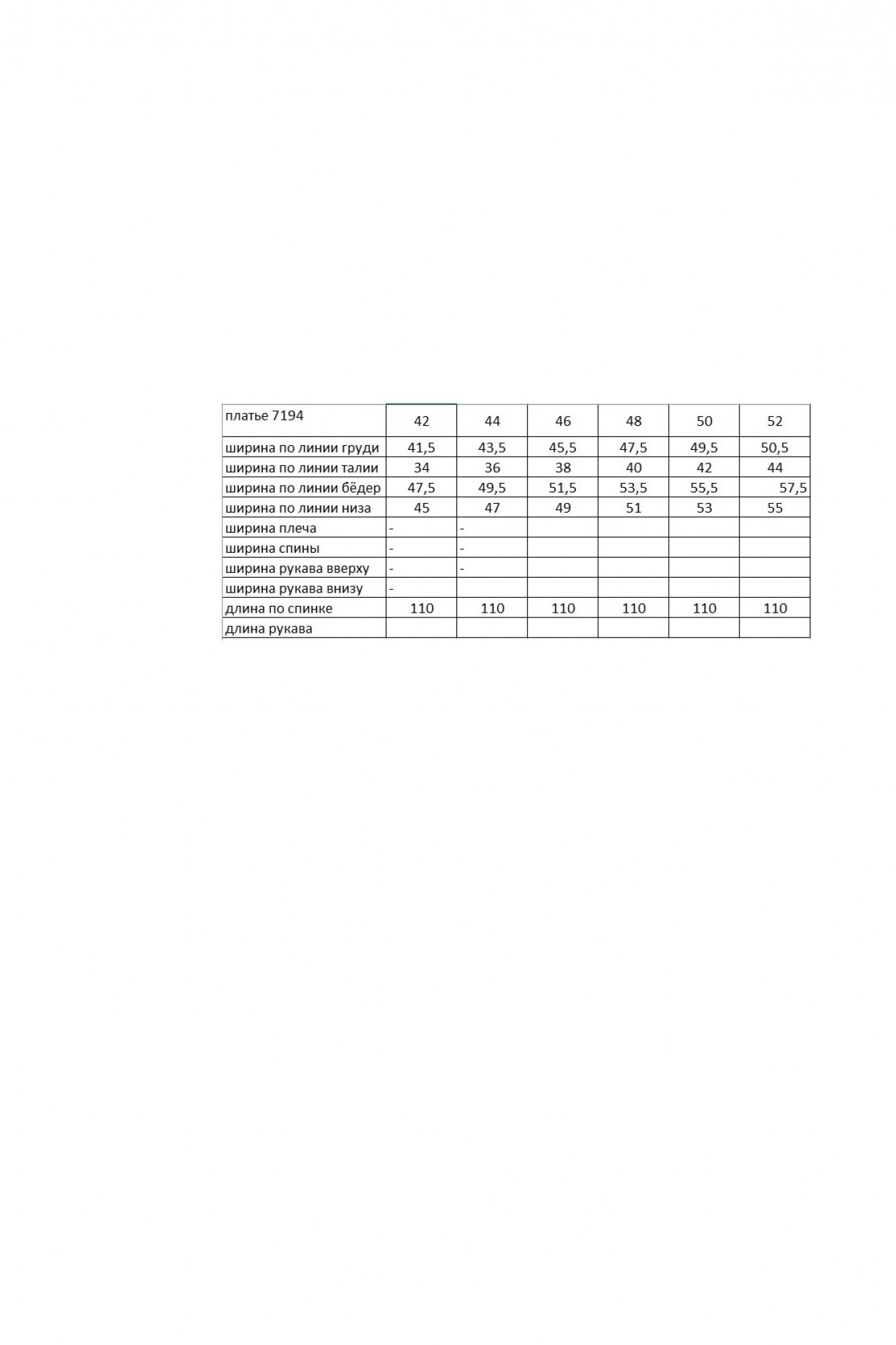 Таблица размеров