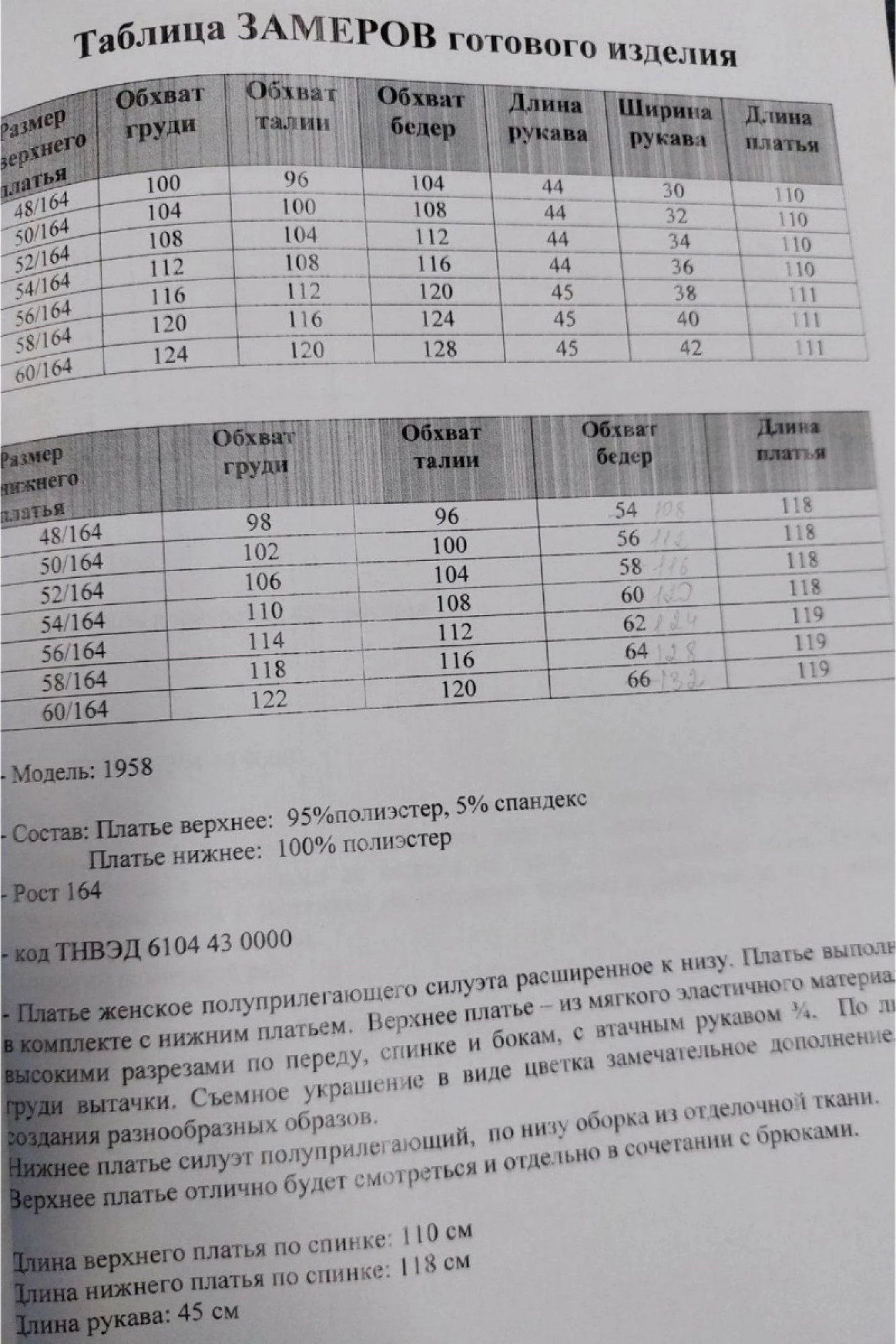 Платье верхнее: 95%полиэстер, 5% спандекс Платье нижнее: 100% полиэстер