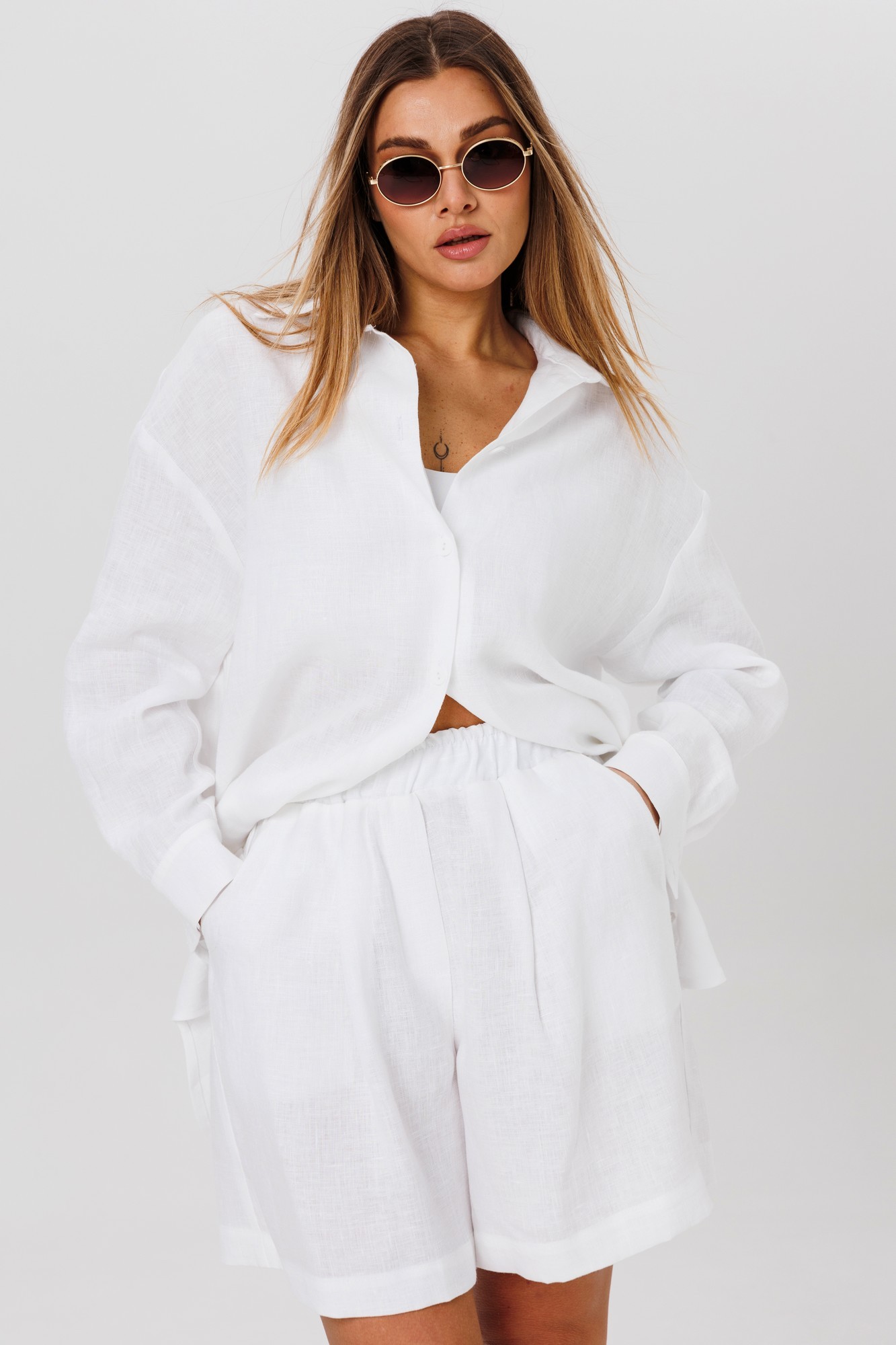 Шорты будут идеально смотреться с нашей рубашкой 6001 (на фото), также шорты можно купить в составе костюма 8004. Составят незаменимую часть вашего базового весенне-летнего гардероба.