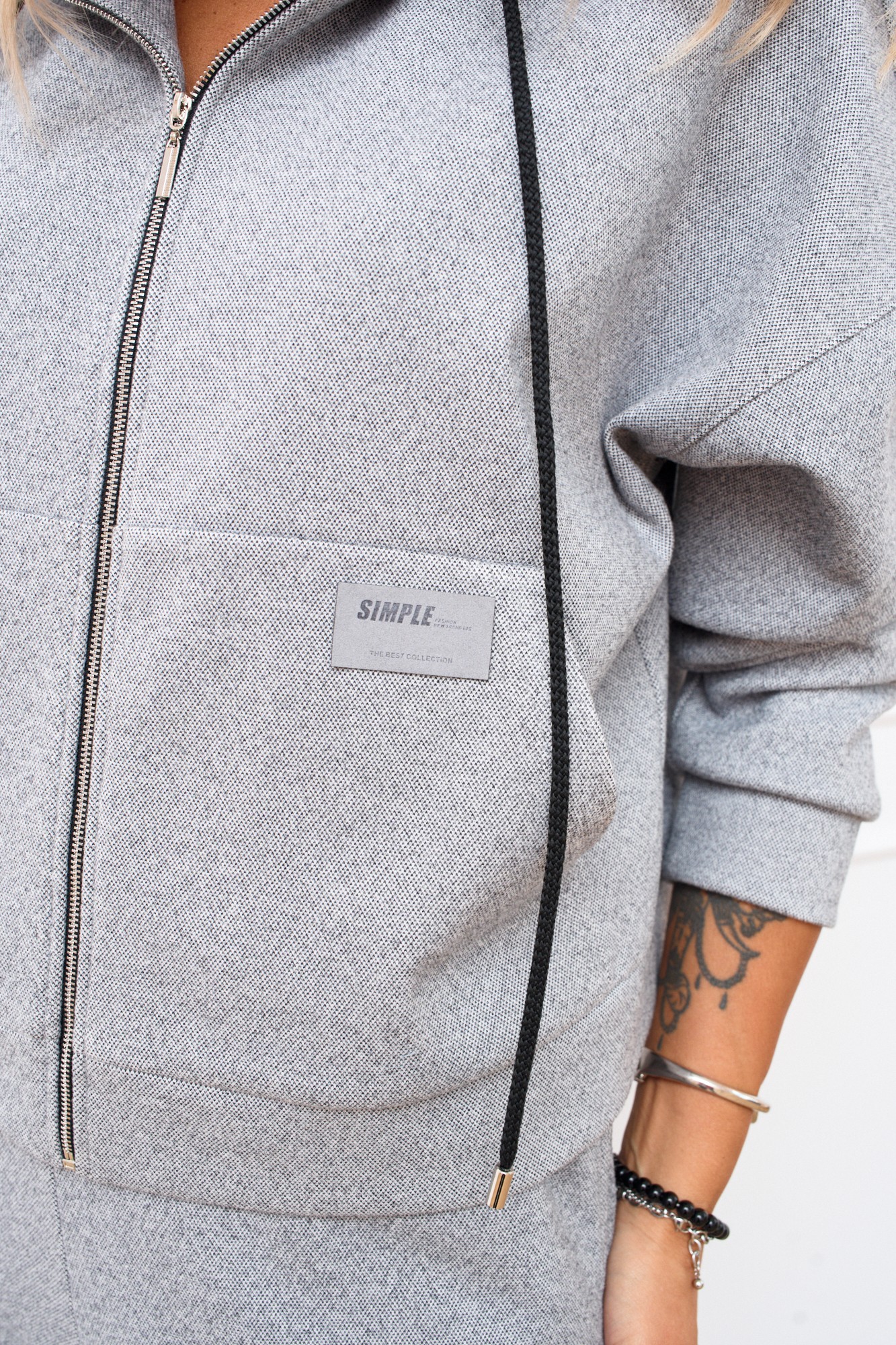 Костюм женский из нежнейшего мягкого трикотажного полотна. Толстовка прямого силуэта с центральной застёжкой на тесьму молнию по горловине мягкий капюшон с кулисой и шнуром обеспечивает дополнительный комфорт и защиту от ветра. Практичный карман-кенгуру обработан на передних половинках задекорирован стильной нашивкой. По низу изделия для лучшей посадки притачной пояс. Линия плеча спущена, рукав втачной по низу притачная манжета. Брюки прямого силуэта в боковых швах обработан карман. Верхний срез на притачном поясе на эластичной тесьме и шнуром что позволяет легко регулировать посадку. На задних половинках настрочен накладной карман.