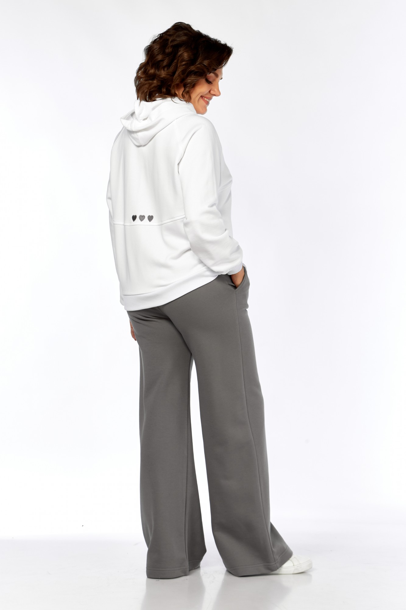 Комплект брючный. Кофта свободного кроя с центральной застежкой на тесьму-молнию. Рукав покроя реглан с притачным манжетам по низу (довяз). По переду и спинке кокетки. Капюшон со средним швом. По низу изделия отделочный пояс (довяз). В качестве отделки используется вышивка. Брюки широкие, верхний срез обработан поясом с резинкой. В боковых швах обработаны карманы.