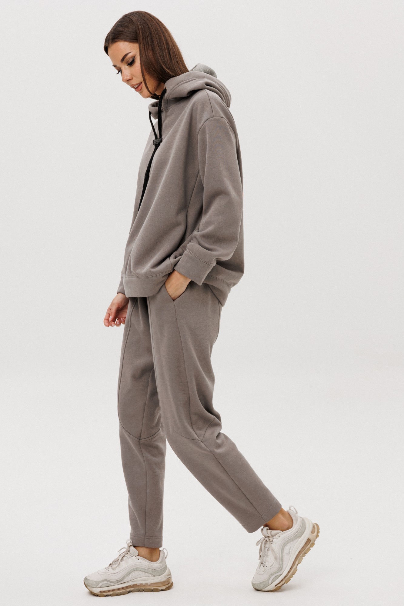 Уютный костюм из тёплого хлопчатобумажного футера с мягким начёсом «барашек» — идеальное сочетание комфорта и современного стиля. Объёмный худи с капюшоном и контрастным шнуром создаёт расслабленный силуэт, а брюки со слегка зауженным кроем и декоративными строчками добавляют образу актуальности. Материал приятен к телу, хорошо держит форму и дарит ощущение тепла даже в прохладную погоду. Этот костюм подойдёт как для прогулок и путешествий, так и для уютных домашних выходных.