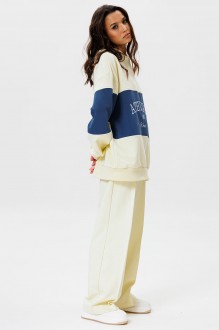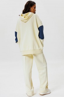 Стильный костюм с с оверсайз худи с контрастной вставкой и вышивкой Athleisure станет любимым в гардеробе. Athleisure - расслабленный и непринужденный стиль, основанный по большей части на спортивных базовых вещах. По сути, это даже не стиль, а способ носить базовые спортивные вещи. Худи: выполнен из двух контрастных цветов, дизайнерская вышивка, свободный крой, манжеты рукавов, низ изделия и горловина из кашкорсе, удобный капюшон Брюки: простроченные стрелки на передних половинках, классическая посадка, немного заужены к низу, пояс из кашкорсе, с резинкой и шнуром внутри, удобные боковые карманы.
