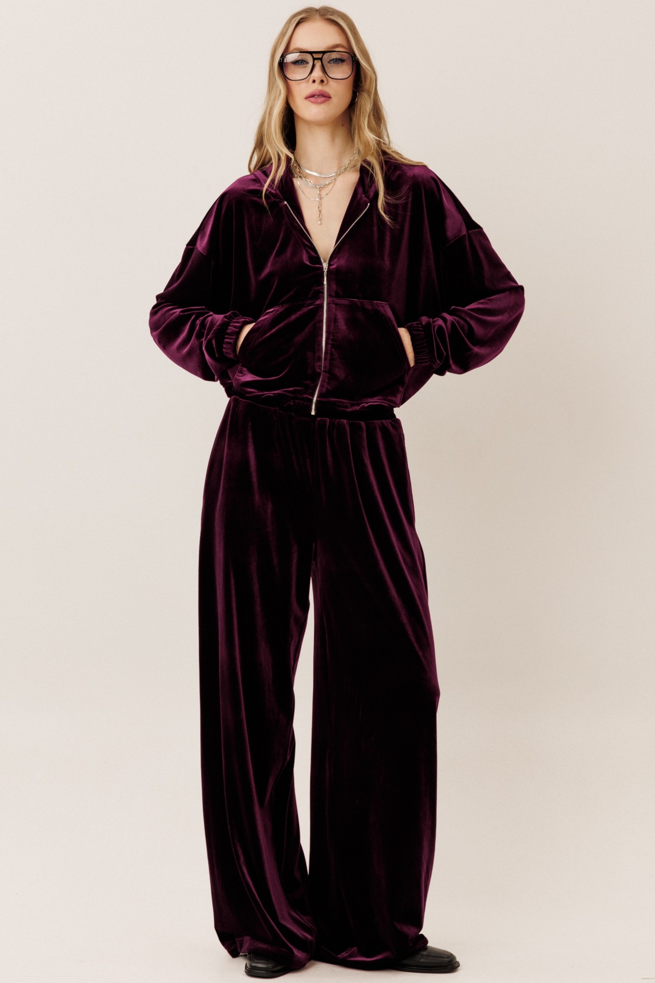 Один из хитов сезона в коллекции от GO - шикарный велюровый костюм! Худи на молнии вместе с широкими брюками - лучшее решение для Вас!