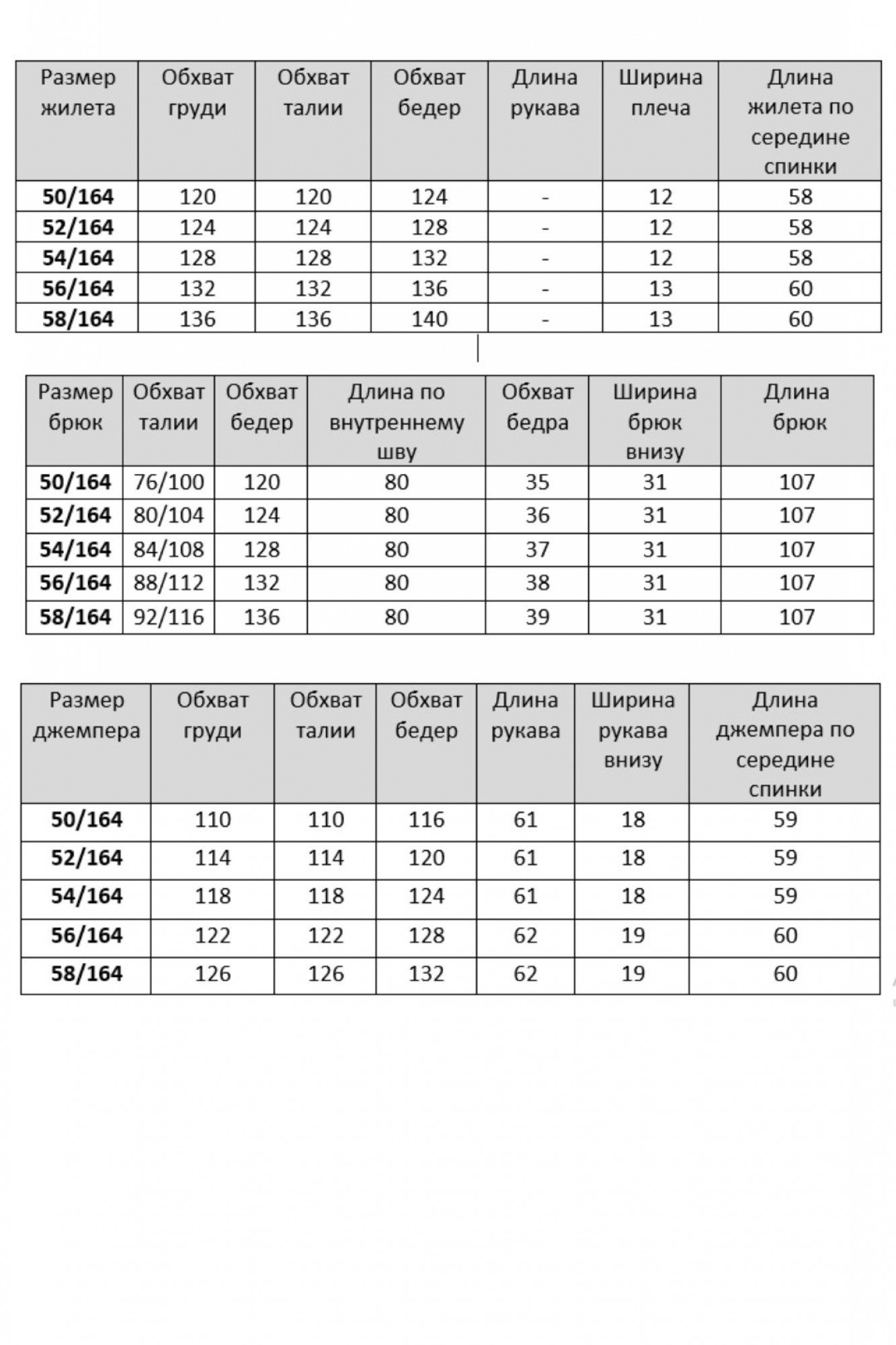 Комплект тройка состоящий из жилета, джемпера и брюк.