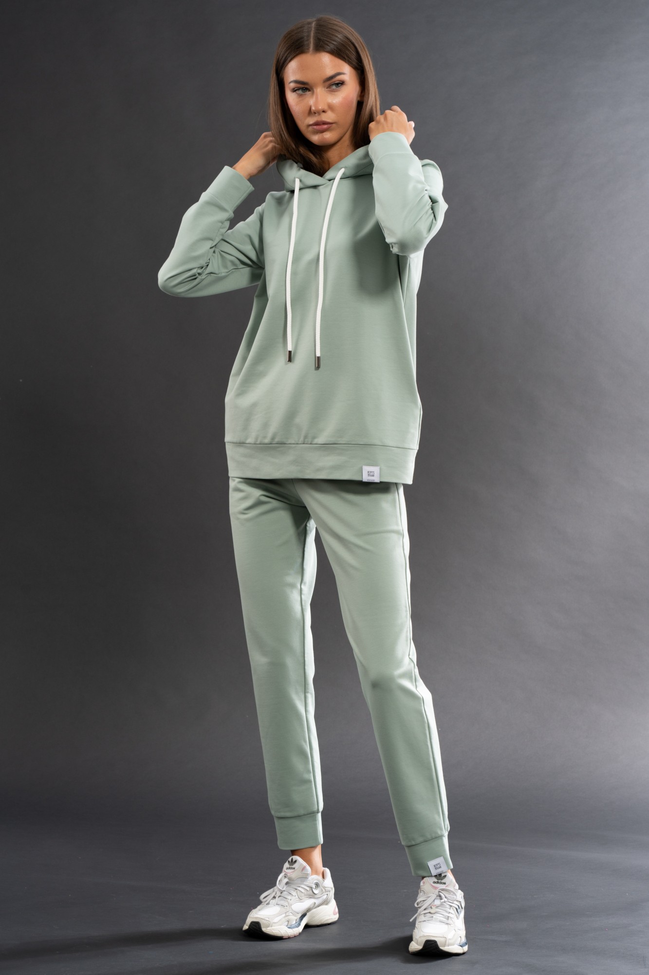 Костюм CLASSIC с брюками средней посадки с карманами в боковых швах. Худи с карманами в боковых швах. Обработка низа брюк манжета. Ткань френч терри (2-х ниточный футер) с невероятно нежным внутренним слоем, качество Пенье, плотность 235 г.м2