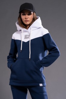 Худи с двухцветным дизайном привлекает внимание благодаря отделочной кокетке. Она добавляет неповторимости и стиля этому утепленному комплекту.