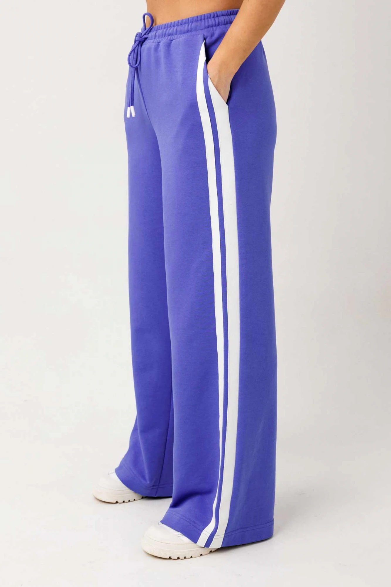 Стильный спортивный костюм в актуальном силуэте — комфортная база для города, путешествий и повседневных образов. Модель выполнена из плотного трикотажного полотна с мягкой, приятной к телу фактурой. Хлопок обеспечивает воздухопроницаемость и комфорт, полиэстер повышает износостойкость и формоустойчивость, а спандекс добавляет эластичность и свободу движений. Куртка прямого силуэта, с центральной застёжкой на тесьму-молнию. Рукав-реглан с притачными манжетами на резинке. Низ изделия обработан притачным поясом на резинке. Функциональные боковые карманы с листочками. Контрастные лампасы по линии рукава. Брюки прямого свободного кроя, с боковыми карманами. Пояс притачной, на широкой резинке с дополнительной регулировкой шнуром. Контрастные лампасы по боковым швам. Низ брюк свободный, без манжет. Костюм представлен в двух цветовых решениях: насыщенный сине-фиолетовый с белыми лампасами и тёмно-серый с бледно-лимонными лампасами. Благодаря продуманной конструкции и качественной обработке швов изделие хорошо держит форму, не деформируется после стирки и подходит для активной носки. Идеальный вариант для тех, кто ценит сочетание функциональности, комфорта и современного спортивного стиля.