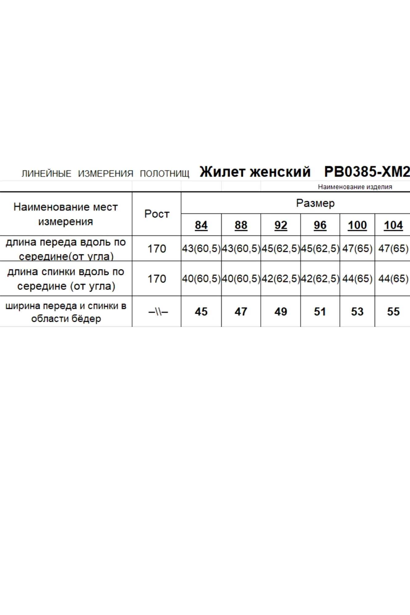 Таблица размеров