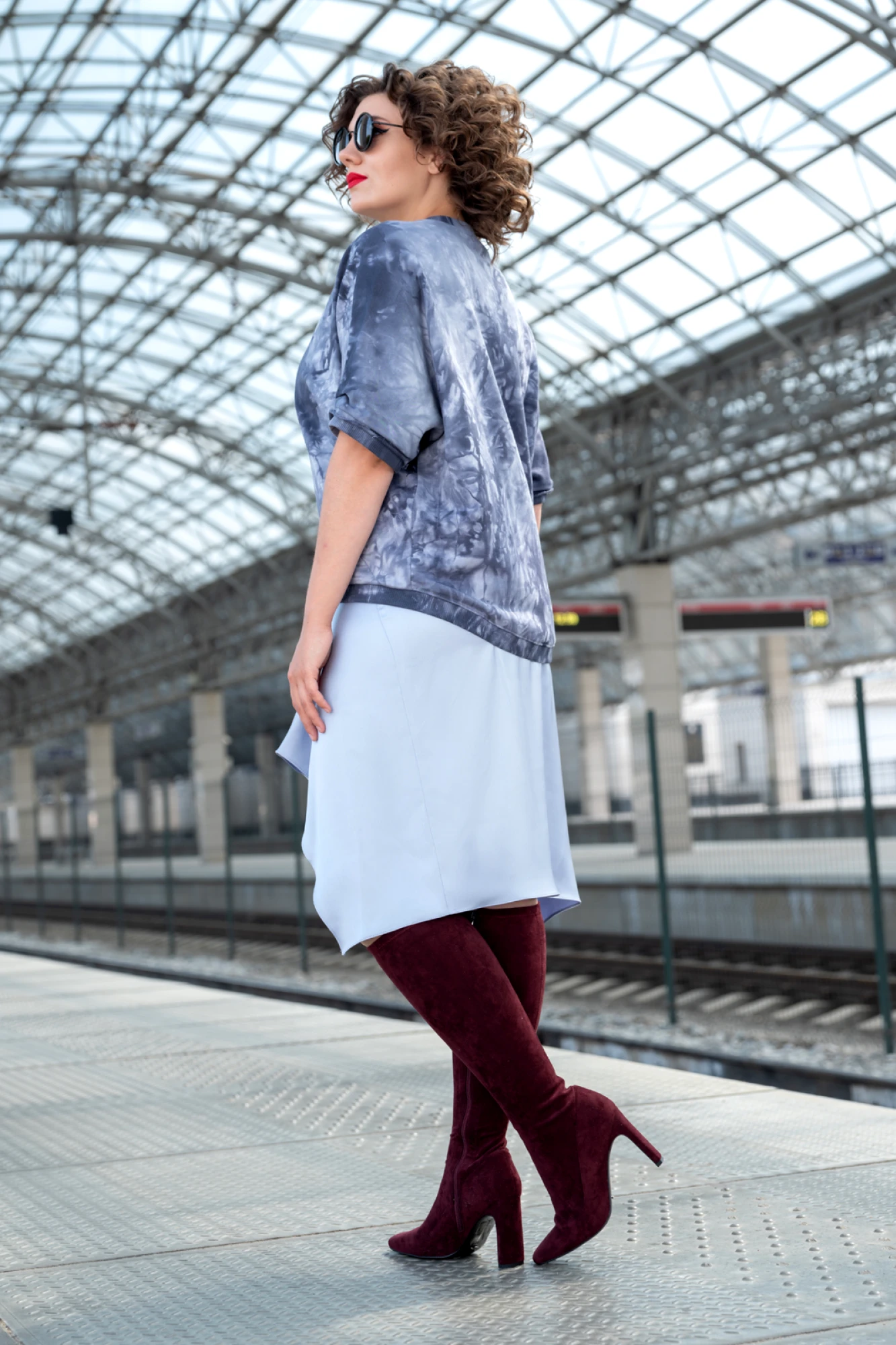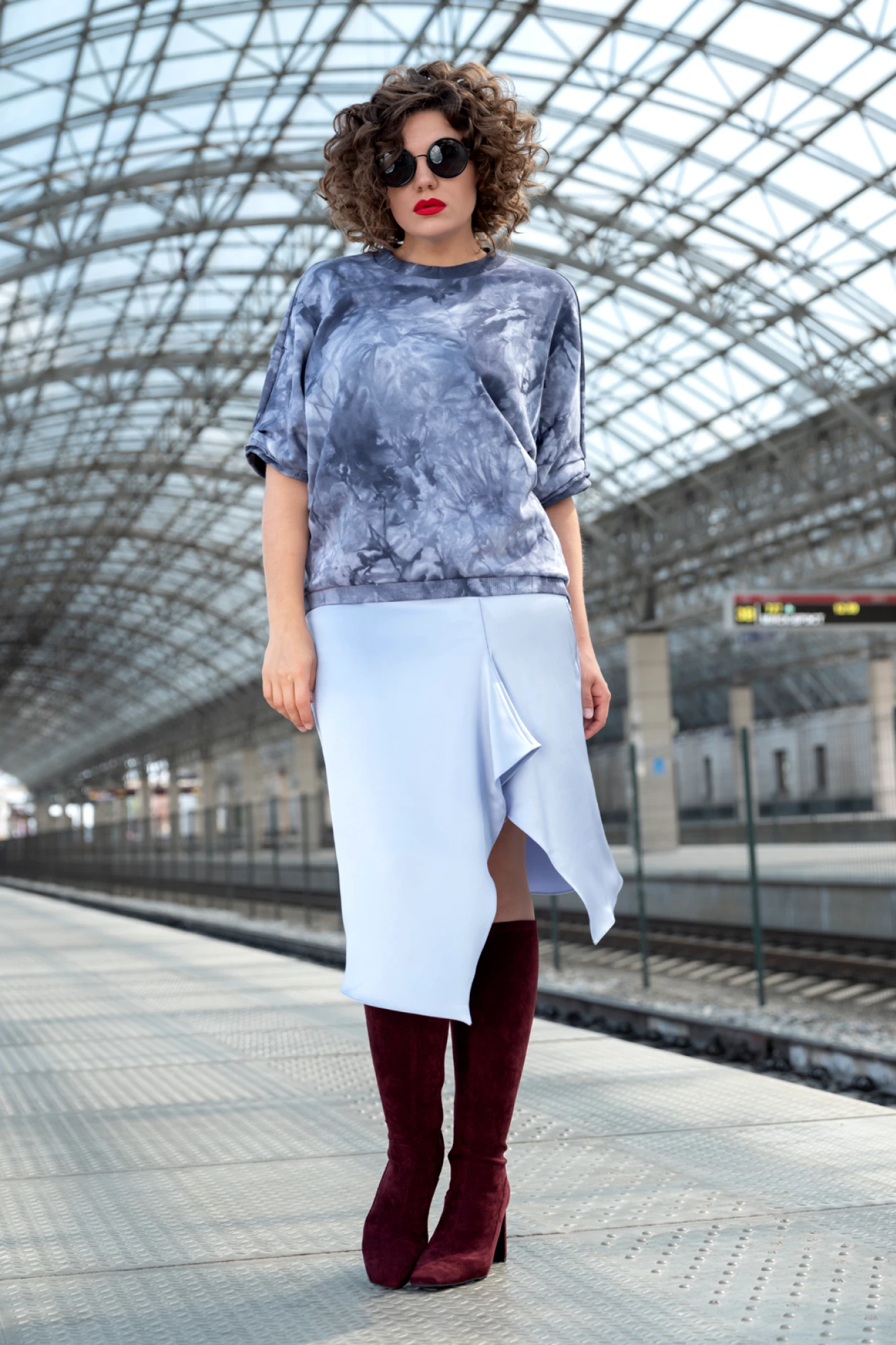 Длинная юбка-солнце скрывает ноги, но отлично подчеркивает талию. Такую юбку чаще всего носят в сочетании с широким поясом.