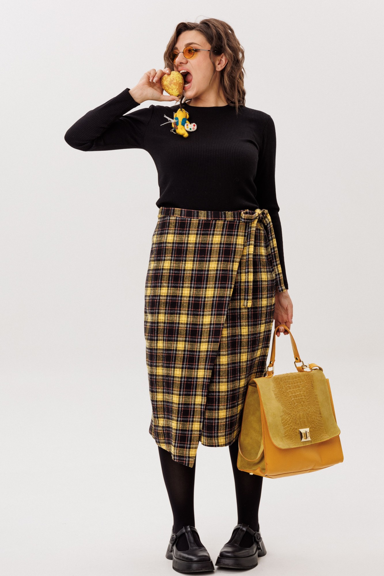 Теплая юбка на запах миди-длины — идеальный атрибут для прохладной погоды. Асимметричный край разбавляет строгость образа игривостью и придает ему смелости. Притачный пояс с потайной пуговицей и завязками обеспечивает идеальную посадку на любой фигуре. Вариации с этой юбкой неисчерпаемы. Это отличный вариант для прохладных вечеров: в ней вы будете выглядеть стильно и женственно, а актуальные расцветки поднимут настроение. Стилизуй юбку с лонгсливом 1770 и джемпером 1774 от Анелли. Эта юбка раскроет потенциал вашего гардероба и поможет вам выглядеть в самом выгодном свете.