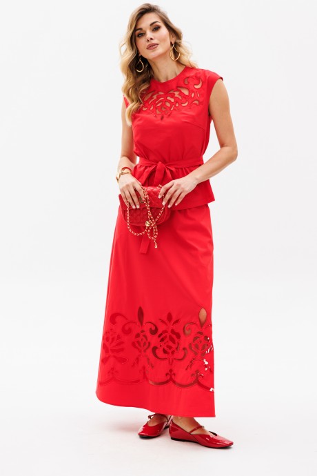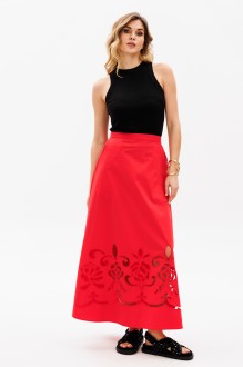 Юбка выполнена из плательно-блузочной ткани. Юбка А-образного силуэта, длиной миди. Юбка на притачном поясе. Спереди боковые карманы с наклонным входом. Сзади в среднем шве спинки застежка на потайную молнию. Юбка спереди по низу декорирована вышивкой.