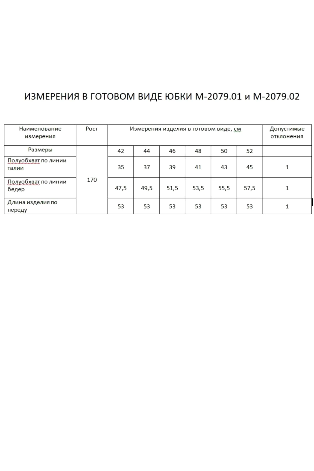 Таблица размеров