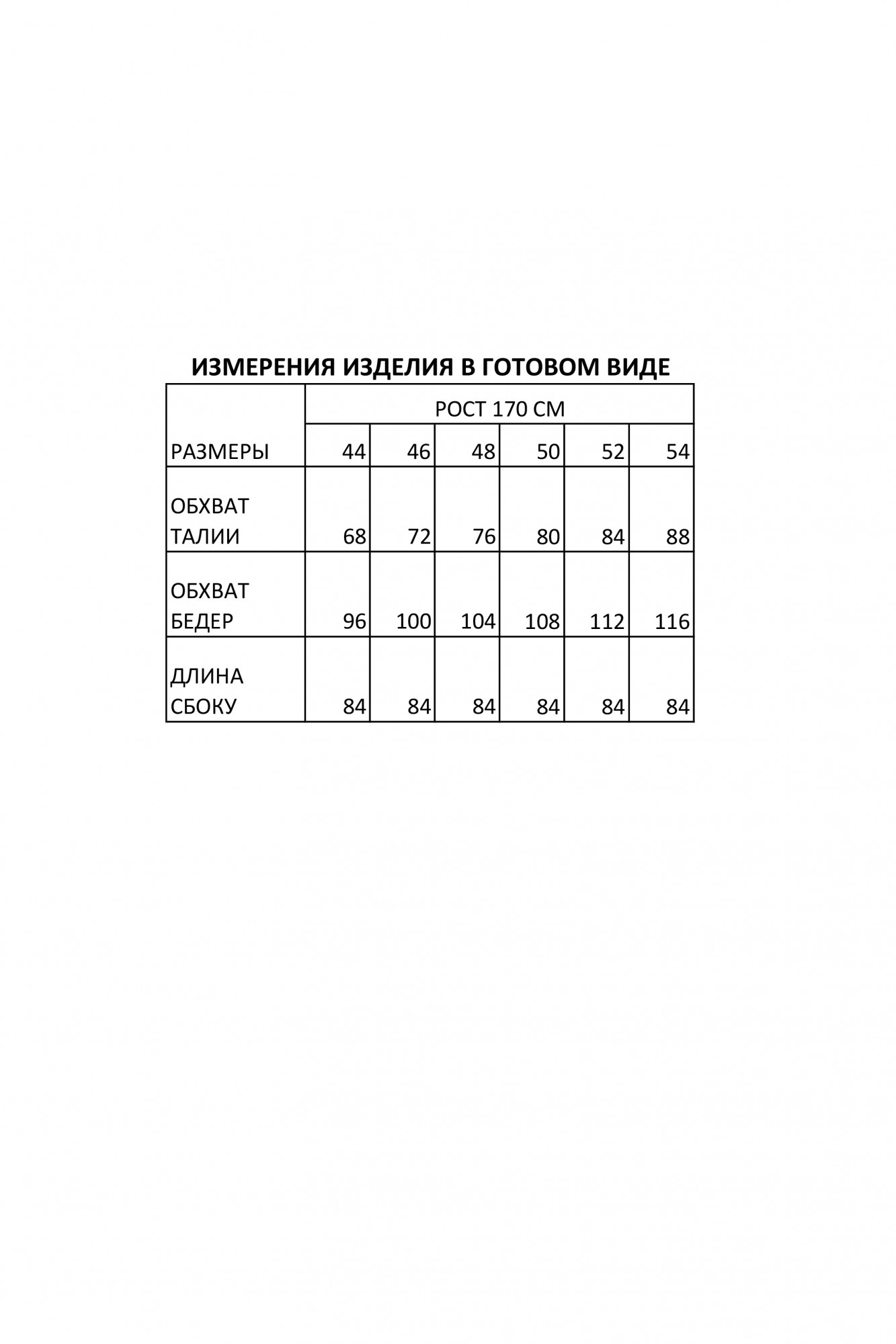 Таблица размеров