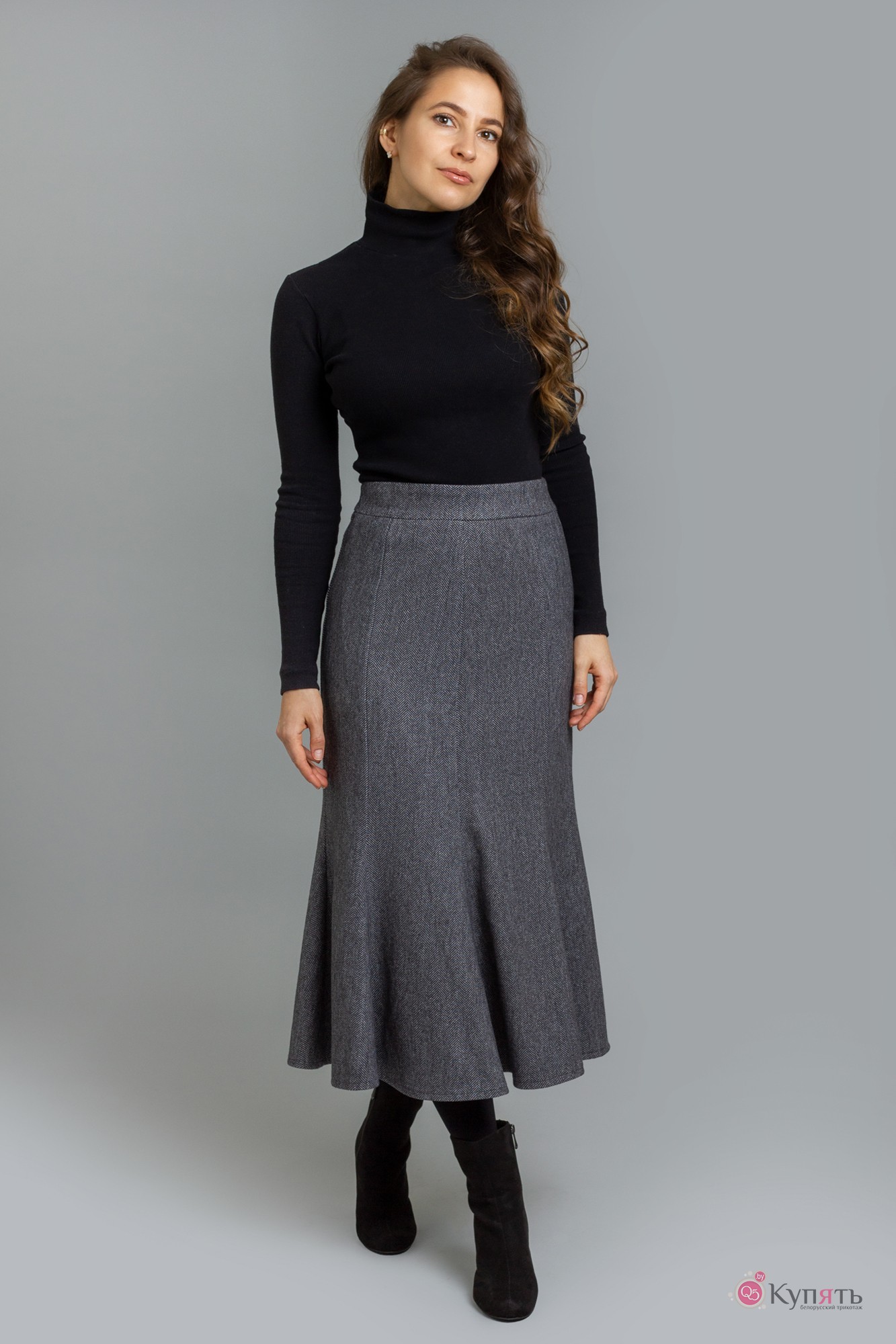 Стильная классическая Юбка-годе с приятной тёплой ткани с рисунком « ёлочка» на поясе, застёгивается на тесьму молнию сзади . Юбка на подкладке.