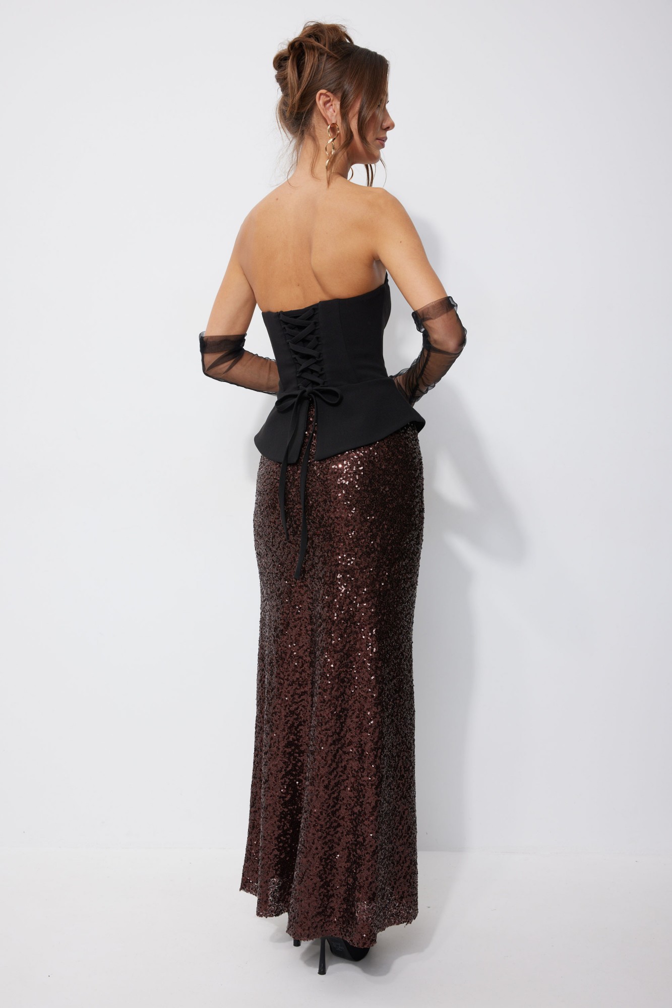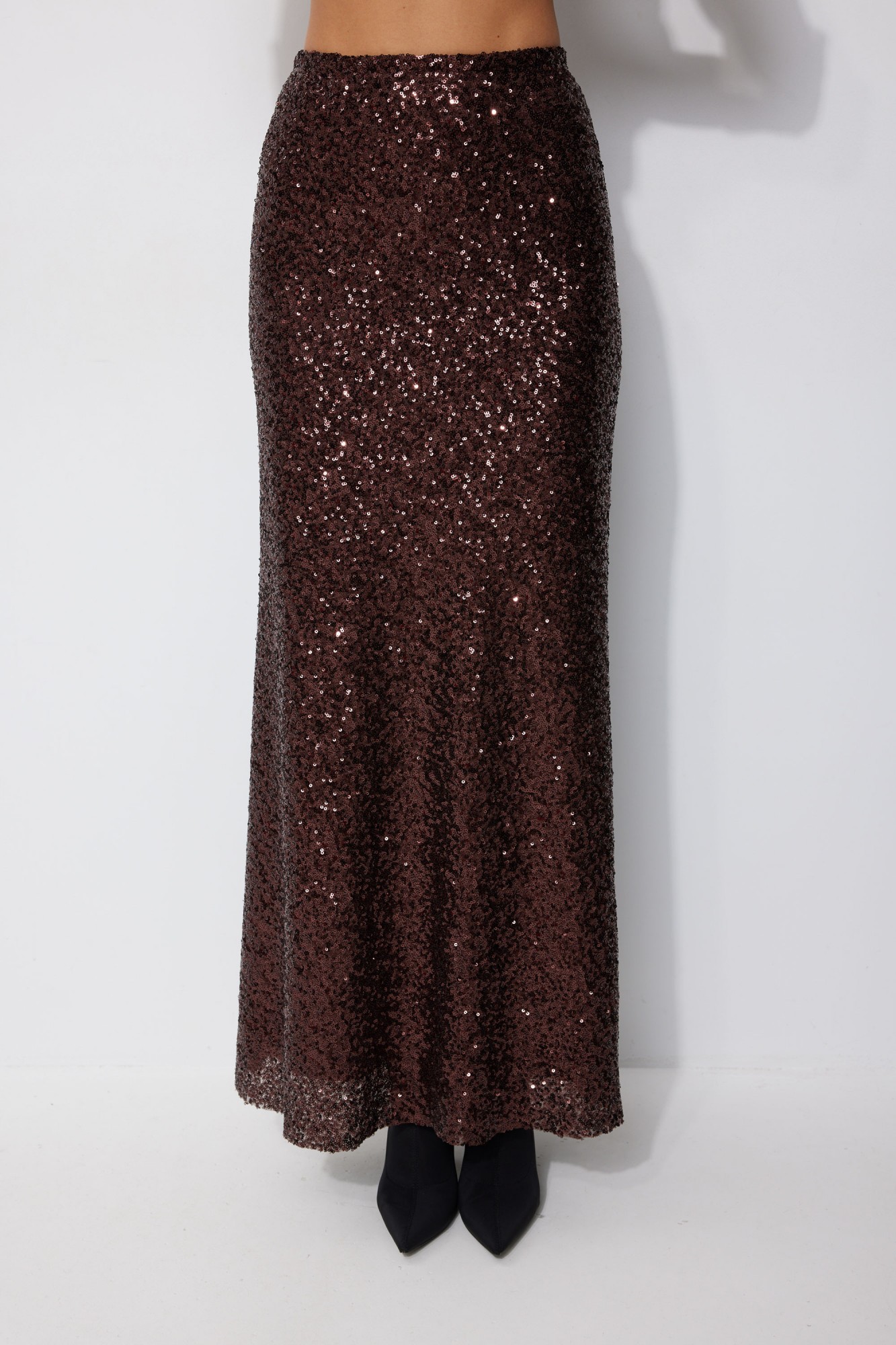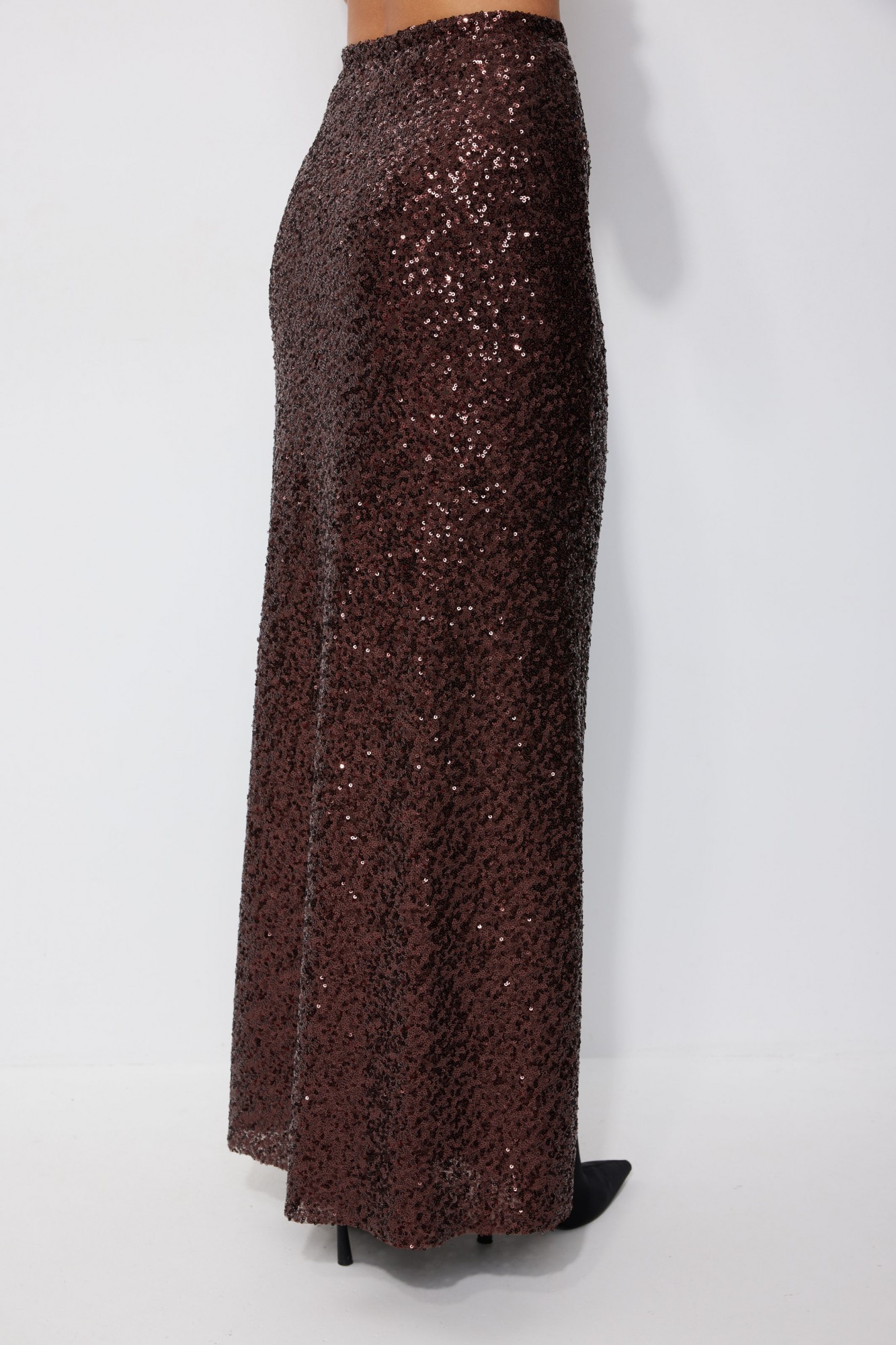 Юбка полуприлегающего силуэта расширенная книзу длиной макси из ткани с пайеткой. Юбка с резинкой по линии талии. Юбка на подкладке.