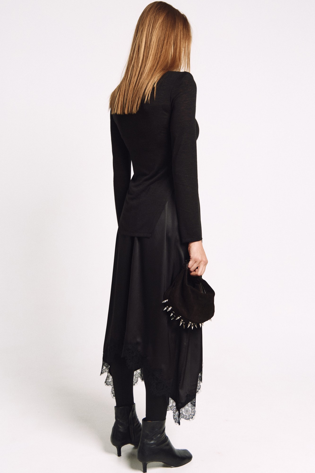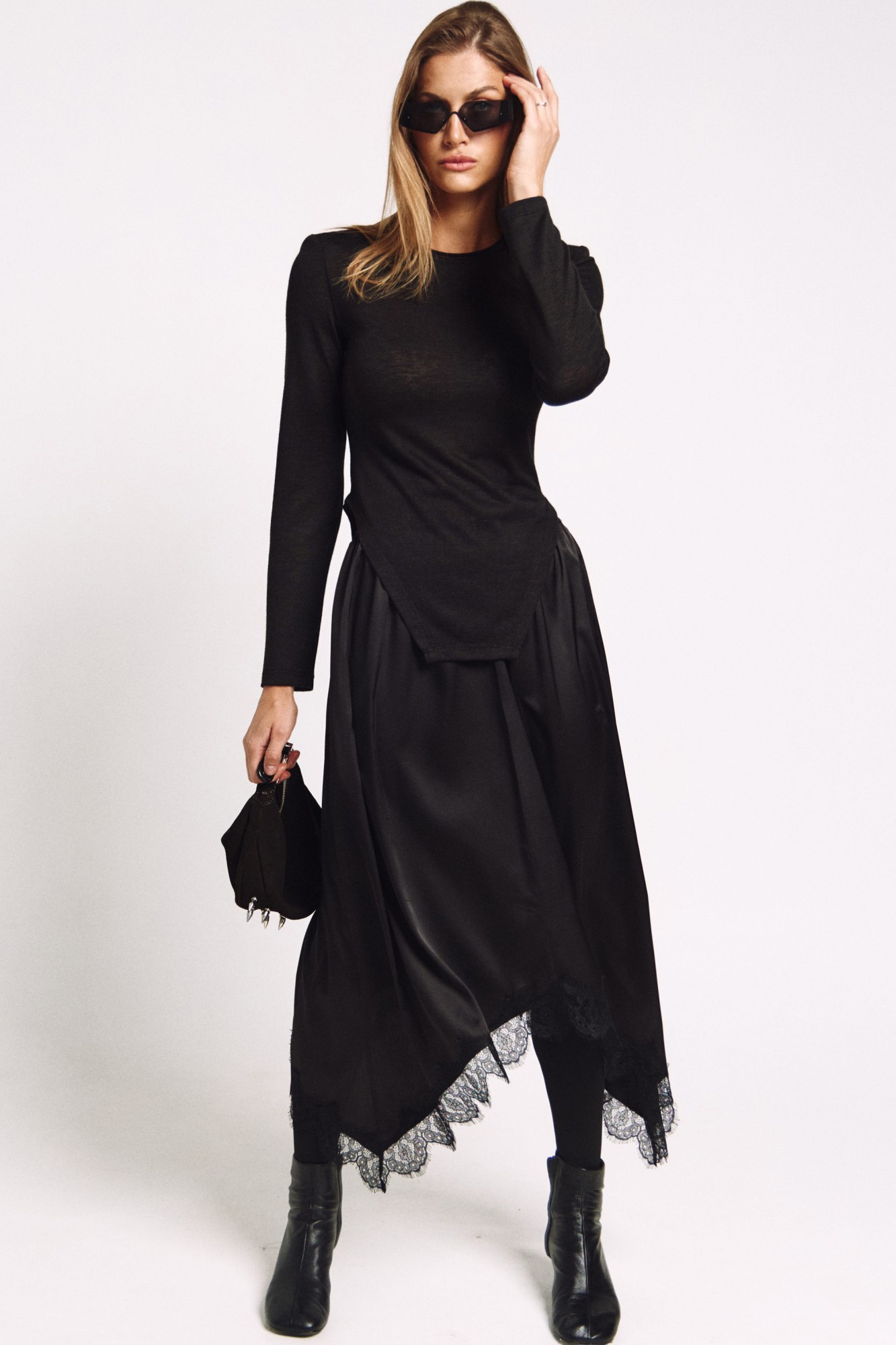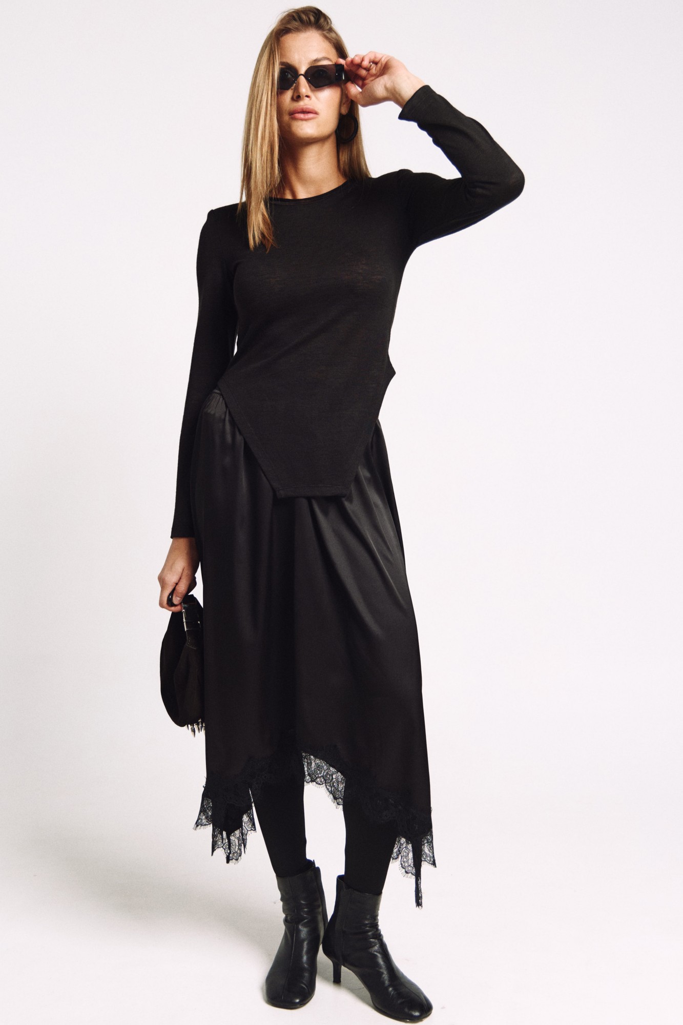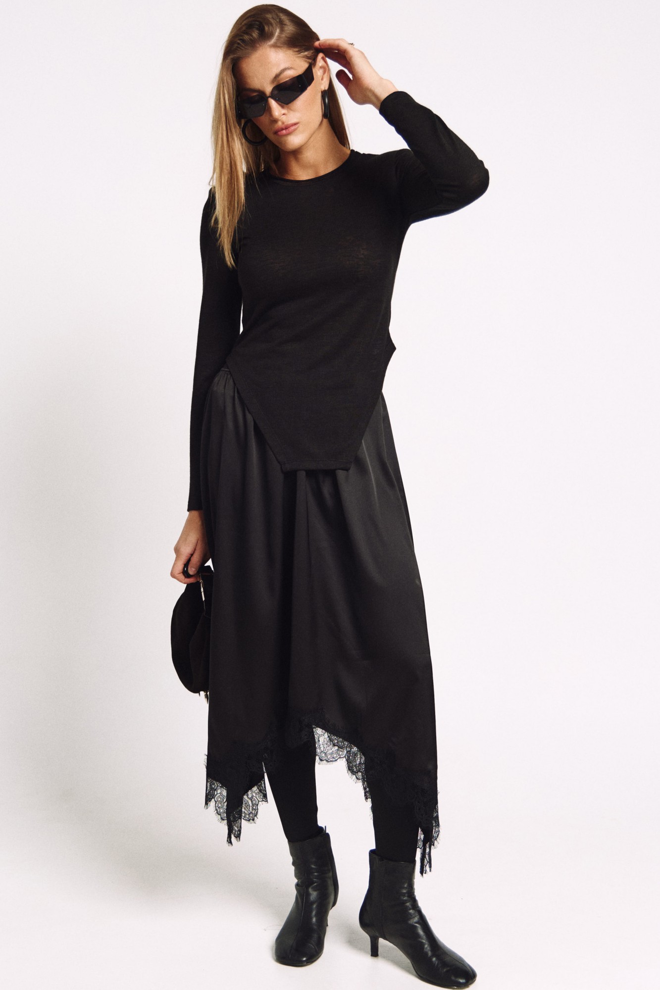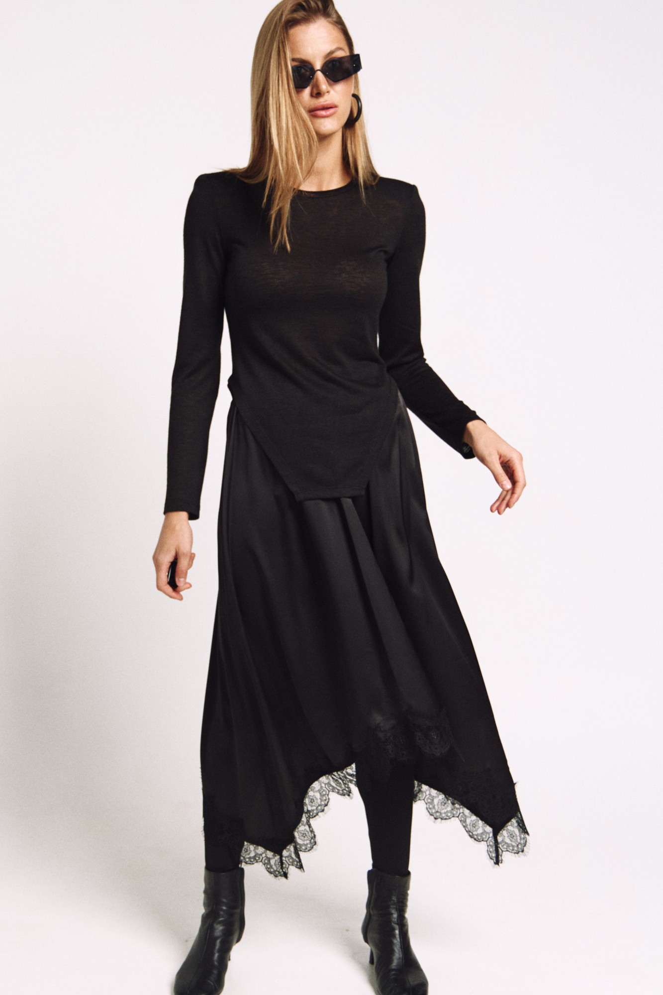 Юбка с резинкой по талии А-силуэта и фигурной линией низа отделанной французским кружевом. Два универсальных размера - S (соответствует 42-44-46), L (соответствует 48-50-52).