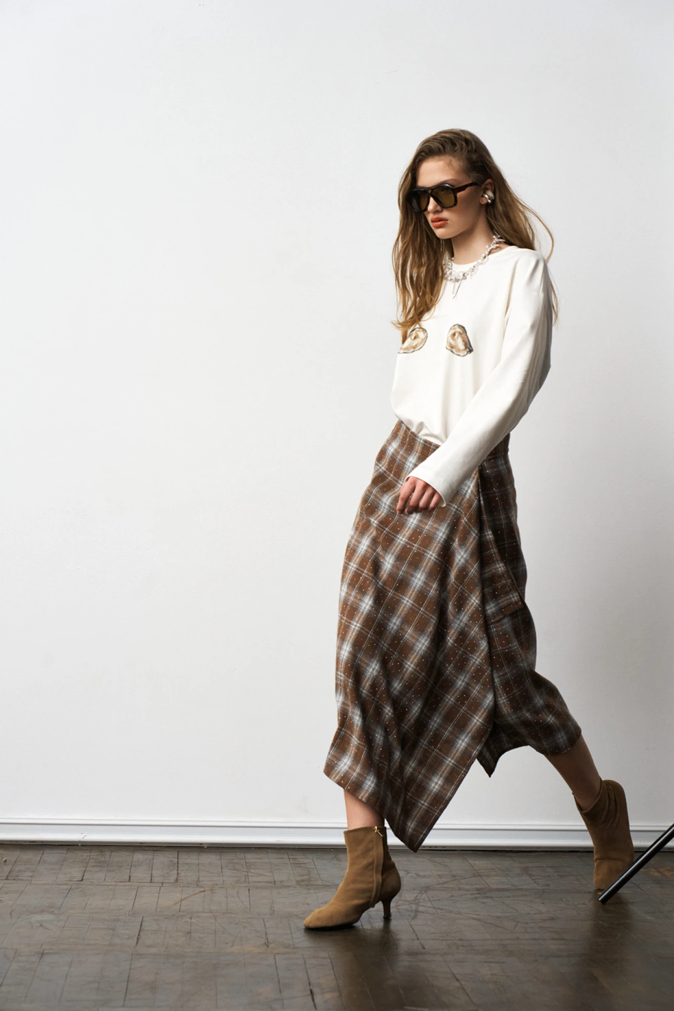Юбка Milmil 1301 принт клетка, коричневый