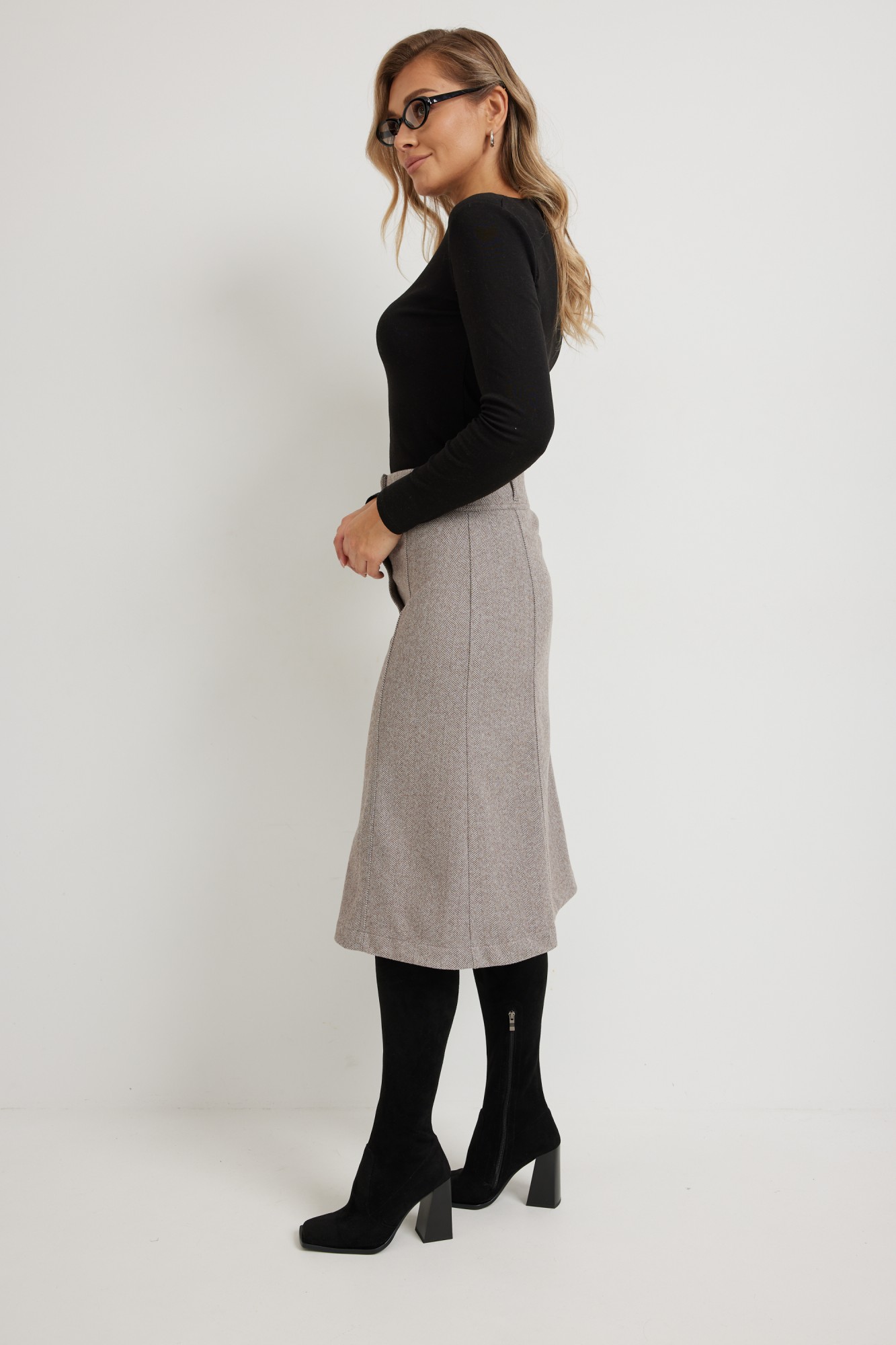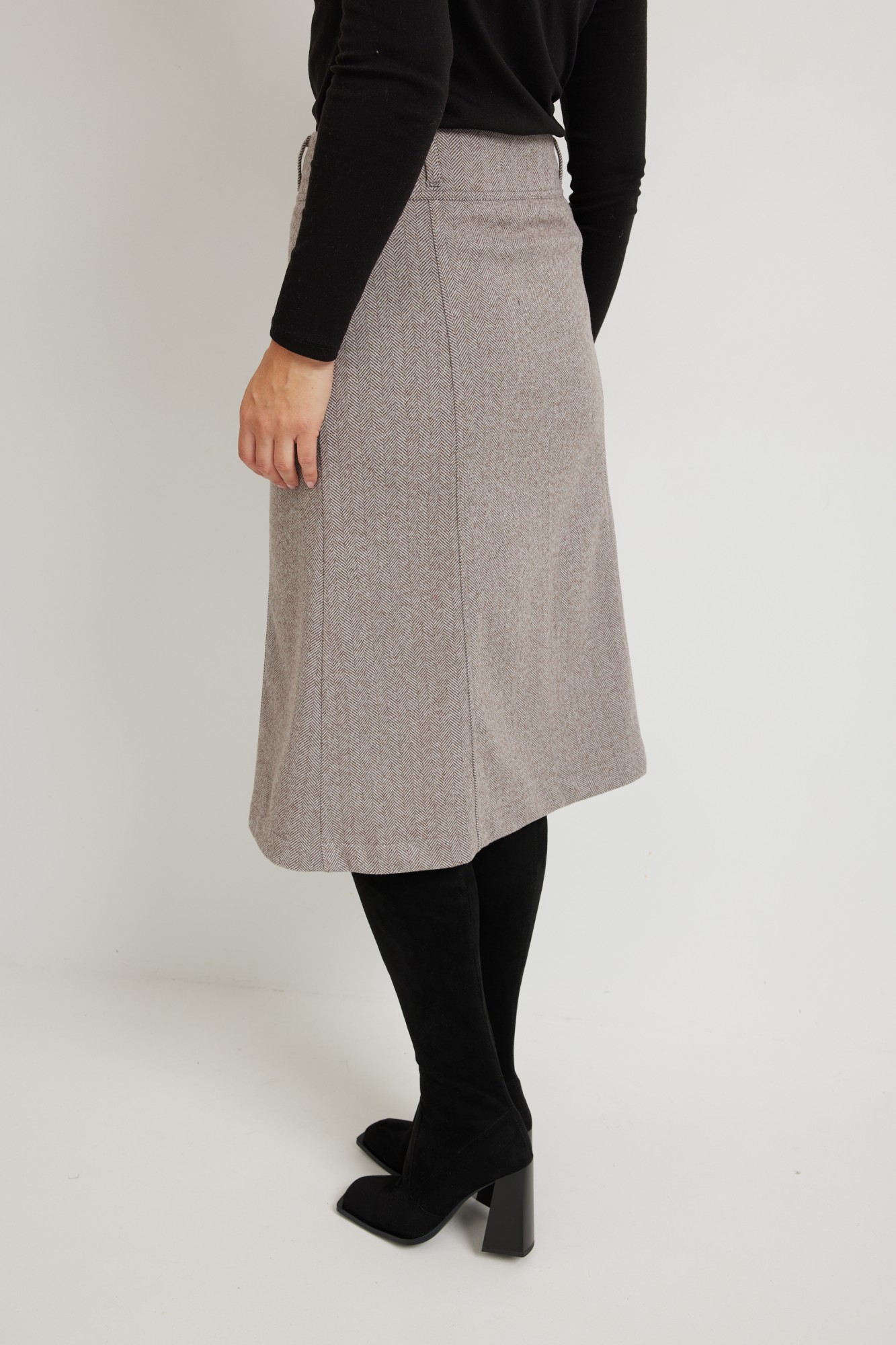 Стильная Юбка -трапеция длиной миди из мягкой приятной ткани "ёлочка". Юбку можно носить в демисезон: весна, зима и осень, подходит как на работу, так и для прогулок и отдыха. Модель с широким притачным поясом застёгивается на декоративные пуговицы, что придаёт особый шарм. Передние и задние половинки с рельефами. Для выбора нужного размера воспользуйтесь размерной сеткой (таблица).