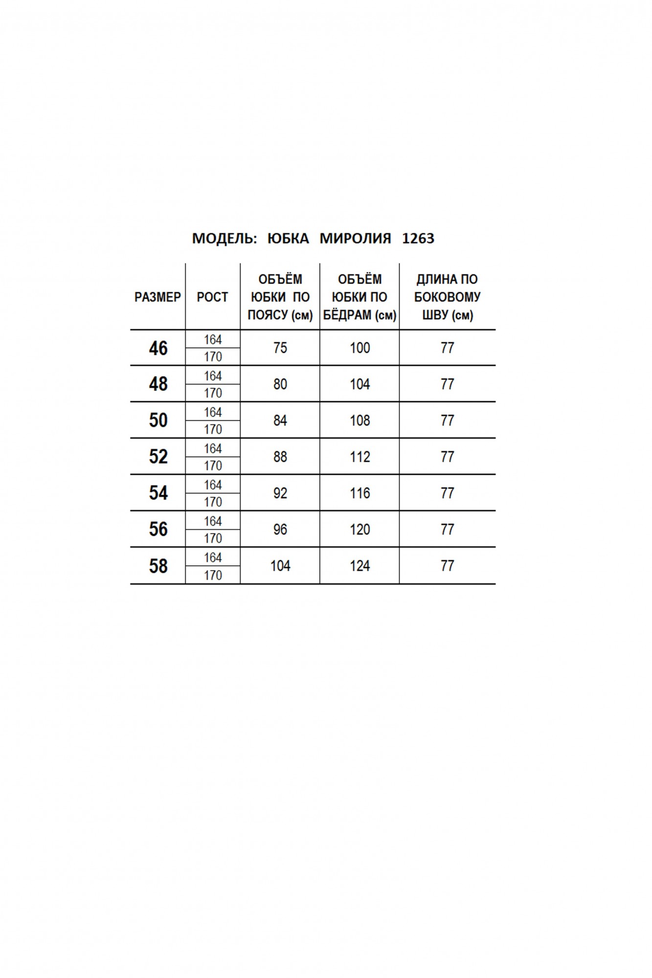 Таблица размеров