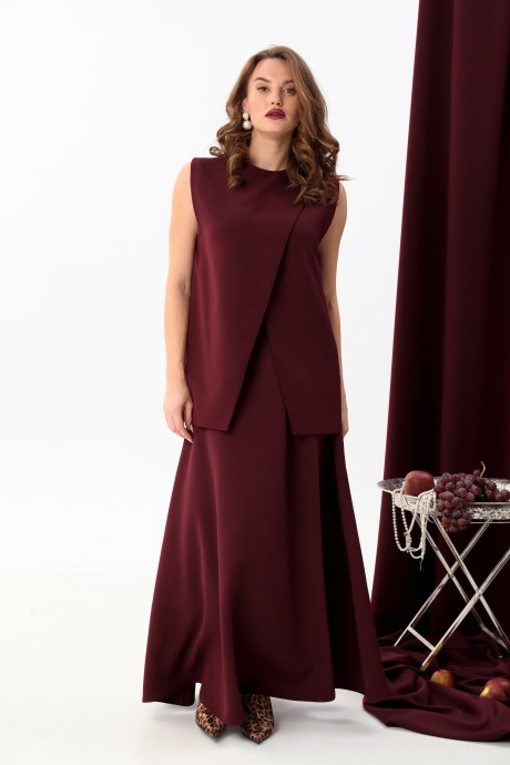 Юбка - солнце макси с узким поясом. В боковых швах расположены карманы. Застёжка на петлю и пуговицу и молнию по спинке.