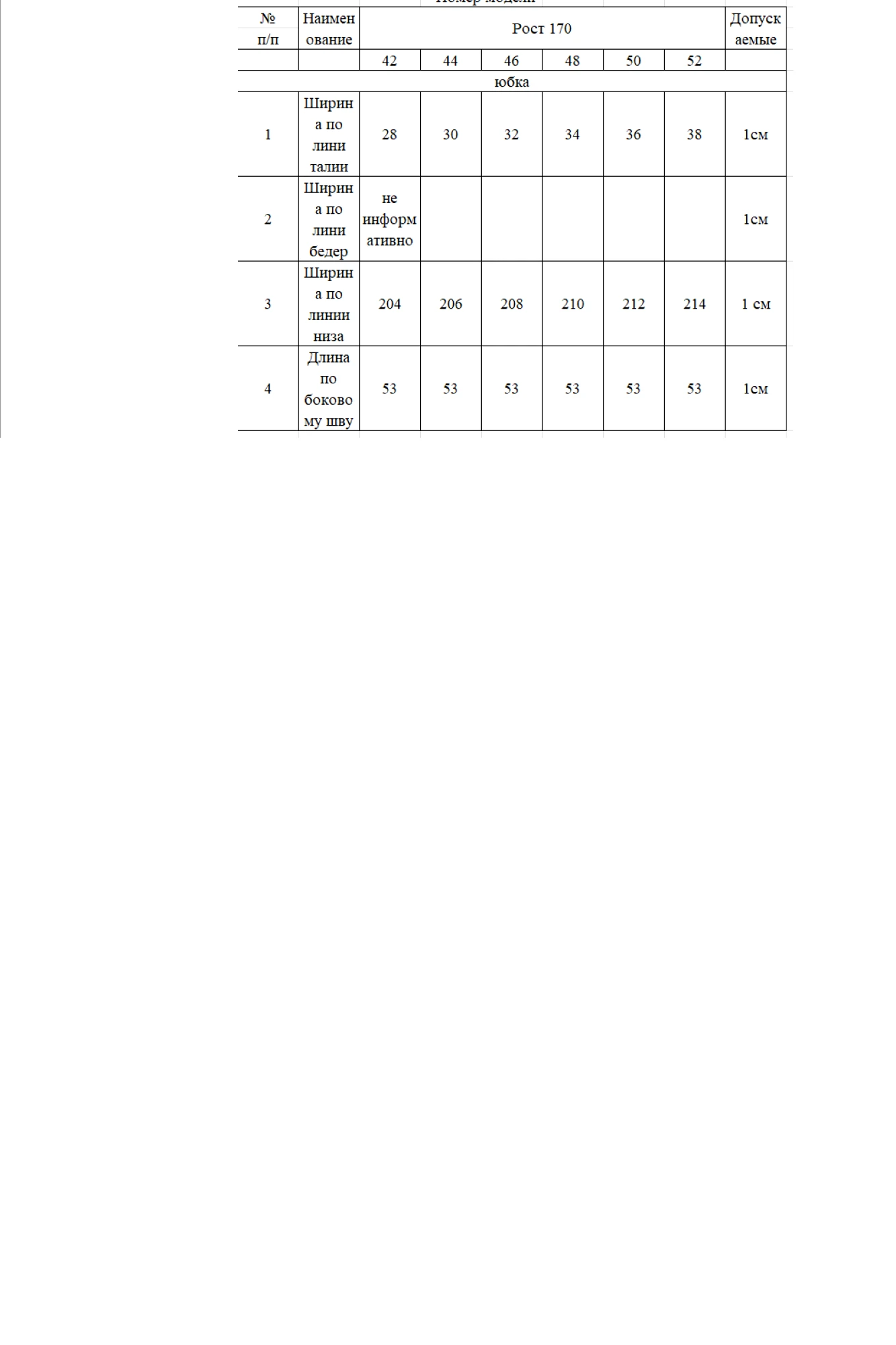 Таблица размеров