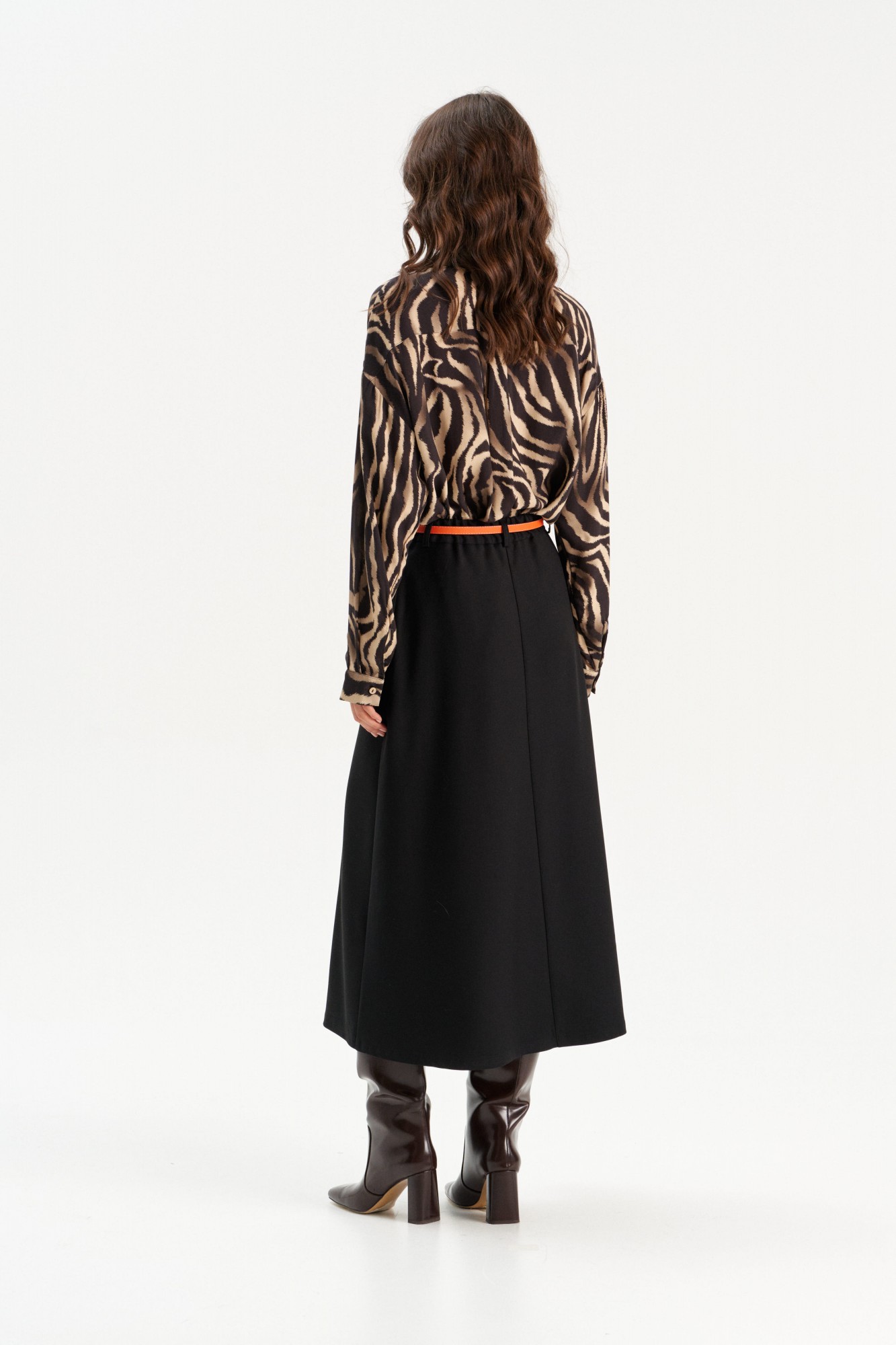 Стильный дизайн: Классический крой и длина миди делают эту юбку универсальной и подходящей для любого случая.