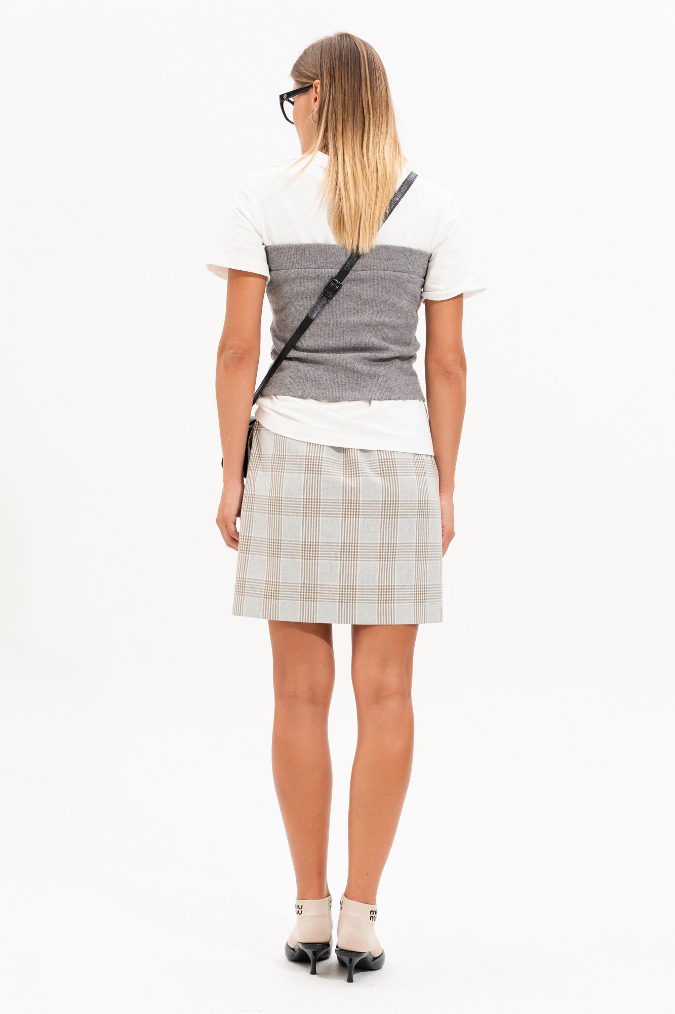 Юбка длины мини на подкладке, прямого силуэта, универсальная и удобная посадка, застежка молния в боковом шве. Карманы боковые наклонные. Пояс юбки на резинке, что дает комфорт в повседневном использовании. На поясе декор в виде бирки с лого. Трендовая юбка из клетки - это сочетание современных модных акцентов и функциональности, идеально вписывается как в деловые, так и в повседневные образы.