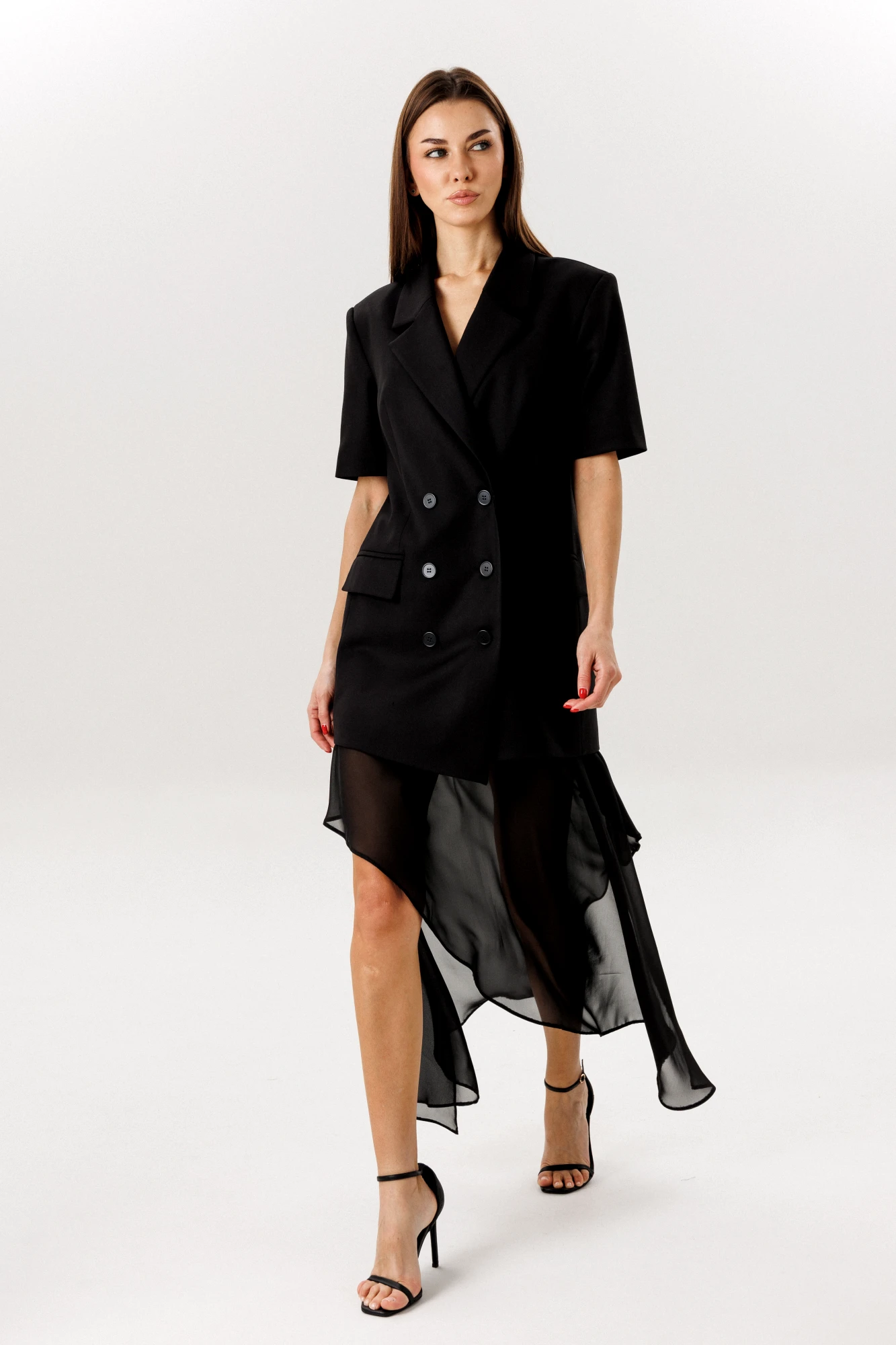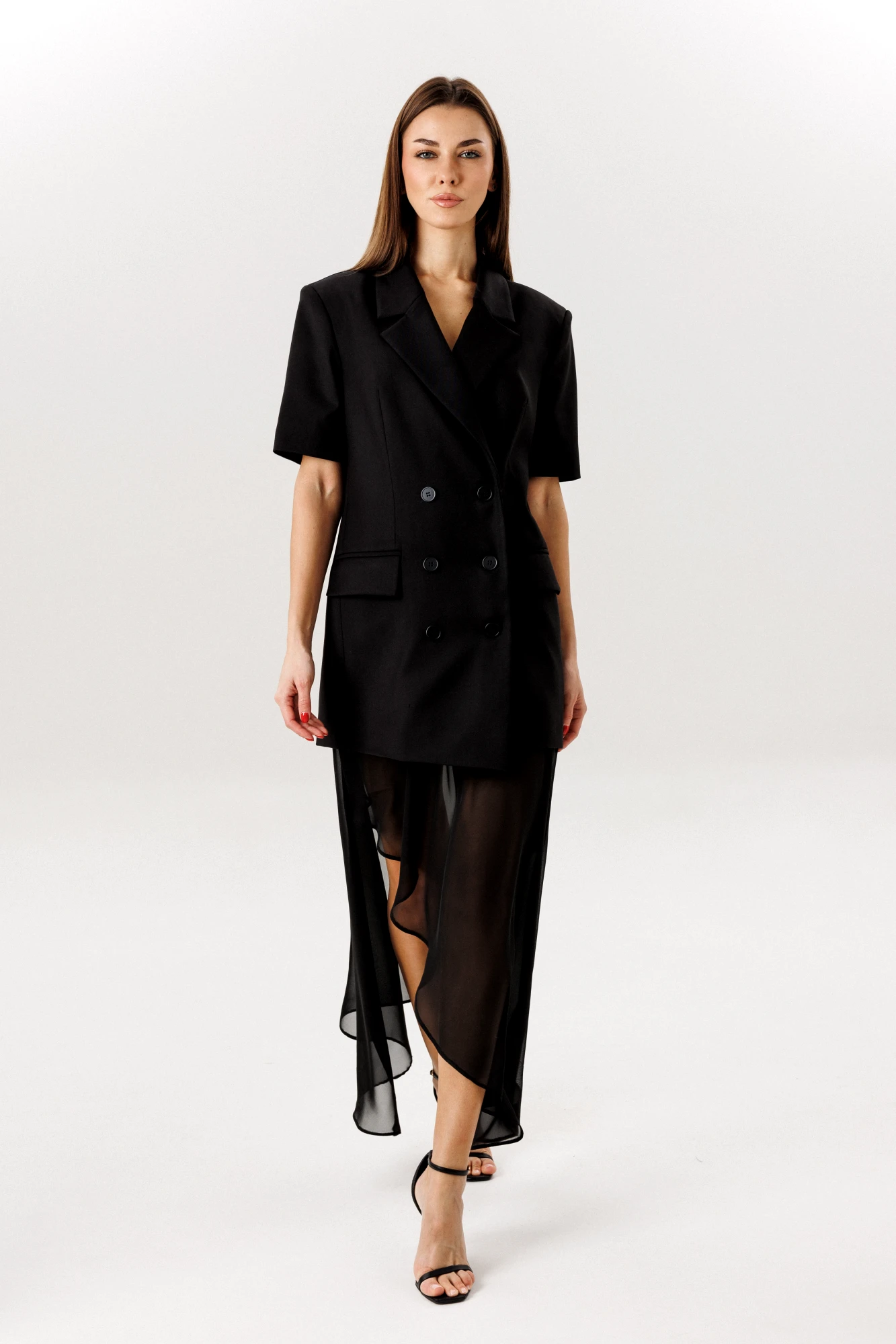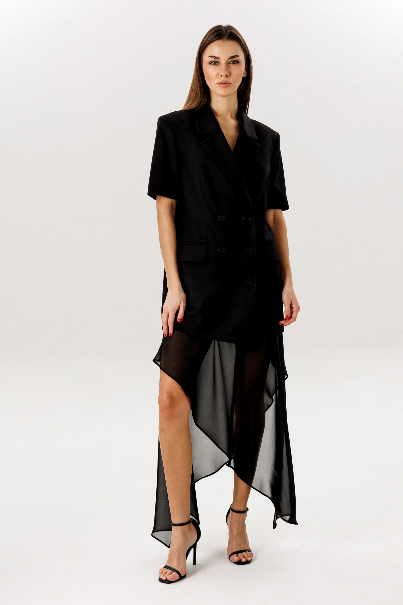 ткань верха -шифон, шортики- креп костюмная, 65% полиэстер, 32% вискоза, 3% спандекс