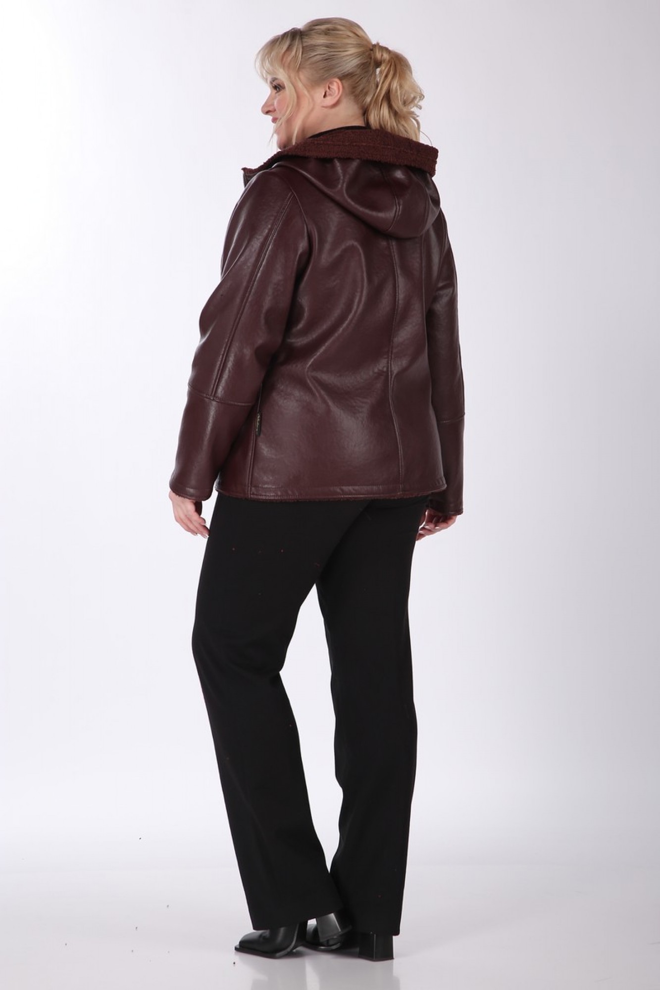 По полочке обработаны рельефы, карманы разрезные функциональные на молнии. Застежка дубленки центральная на металлическую молнию. Горловина - стойка, переходящая в капюшон. Спинка со средним швом. Рукав втачной одношовный, верхняя частьсостоит из двух частей. Низ рукава с подрезом. В модели есть прибавка на верхнюю одежду.