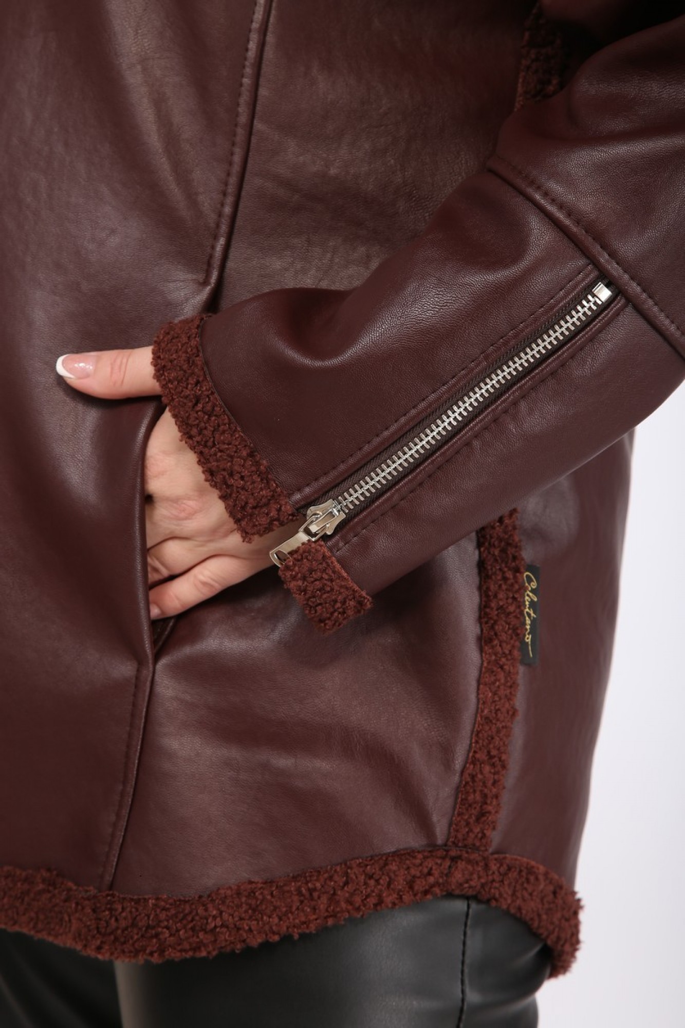 Дубленка женская короткая. Выполнена из экокожи высокого качества. Спинка разрезная, по полочкам обработаны карманы, низ изделия фигурный. Куртка с капюшоном. Рукав втачной, одношовный. Нижняя часть с подрезом, в который вставлена функциональная молния. В модели есть прибавка на верхнюю одежду. Изделие выполнено из высококачественной мягкой экокожи, которая не трескается и не растягивается, в отличие от натуральной кожи. Все молнии на изделии металлические. Куртка без подкладки. По температурному режиму подходит для осени, еврозимы (до небольшого минуса) и весны. Примечание: Перед первой примеркой рекомендуется пройти изнанку (мех) изделия липким роликом для чистки одежды.