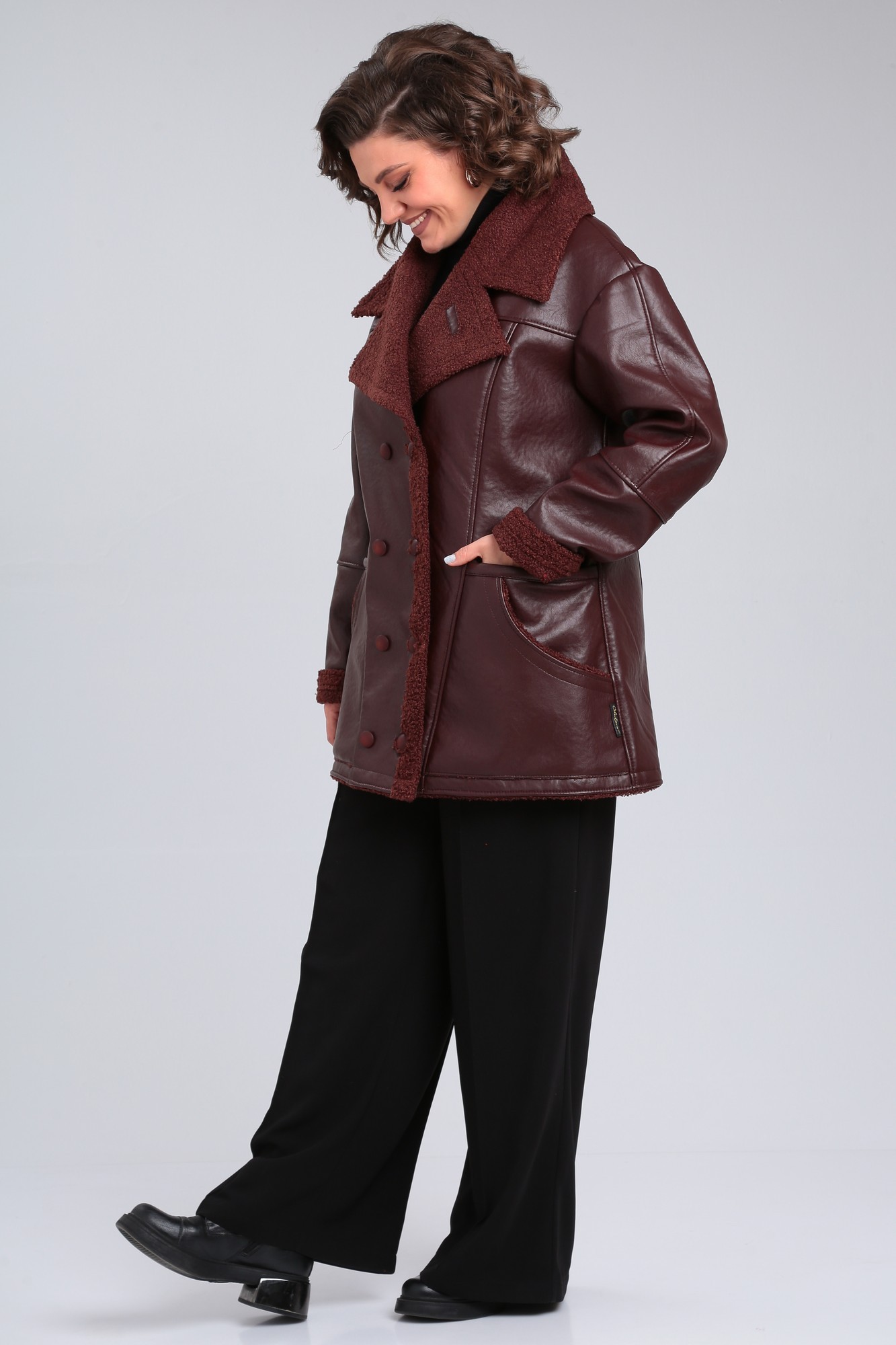 Полочка и спинка отрезные чуть ниже линии талии. В рельефе полочки обработаны карманы. Застежка центральная на петли и пуговицы. Дубленка с капюшоном. Рукав втачной двухшовный. В модели есть прибавка на верхнюю одежду.