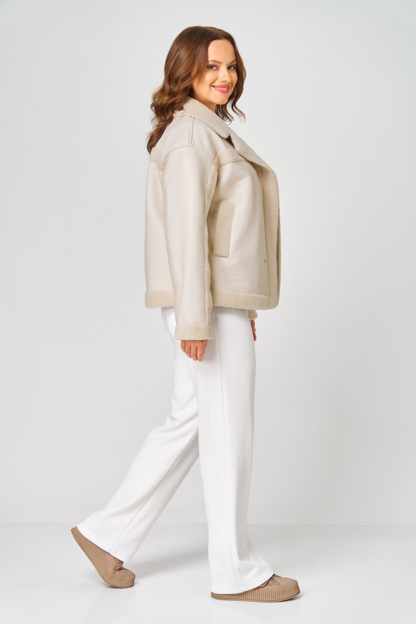 Полупальто женское прямого силуэта с центральной застежкой на петли и пуговицы, линия плеча спущенная. Рукав втачной 2-шовный. Воротник стояче-отложной. Карманы прорезные с надстрочной листочкой. В качестве отделки используются отделочные детали по спинке, переду и рукаву. Температурный режим до 0 градусов.