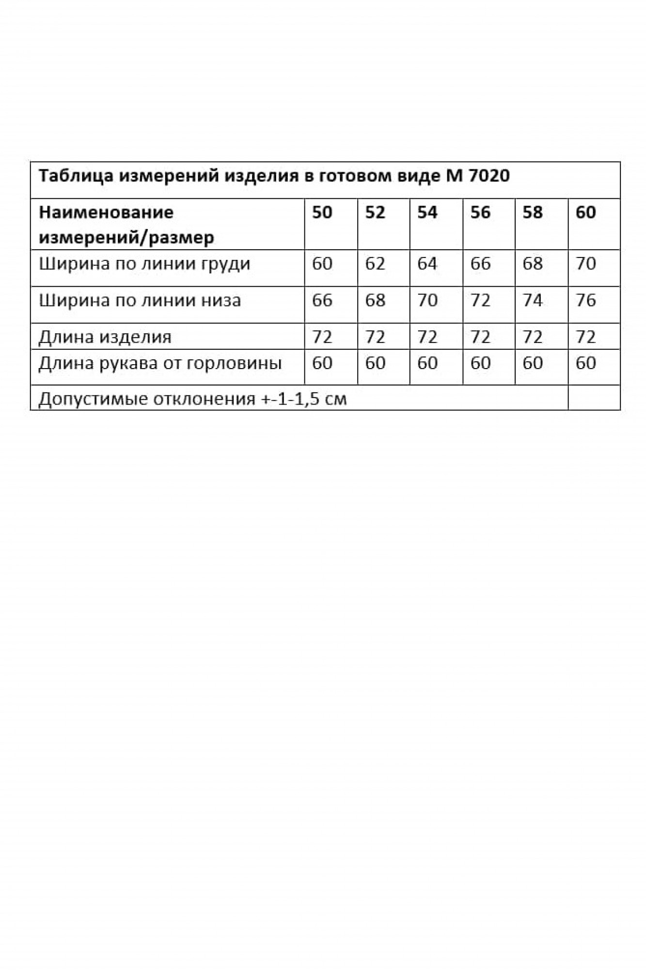 Таблица размеров