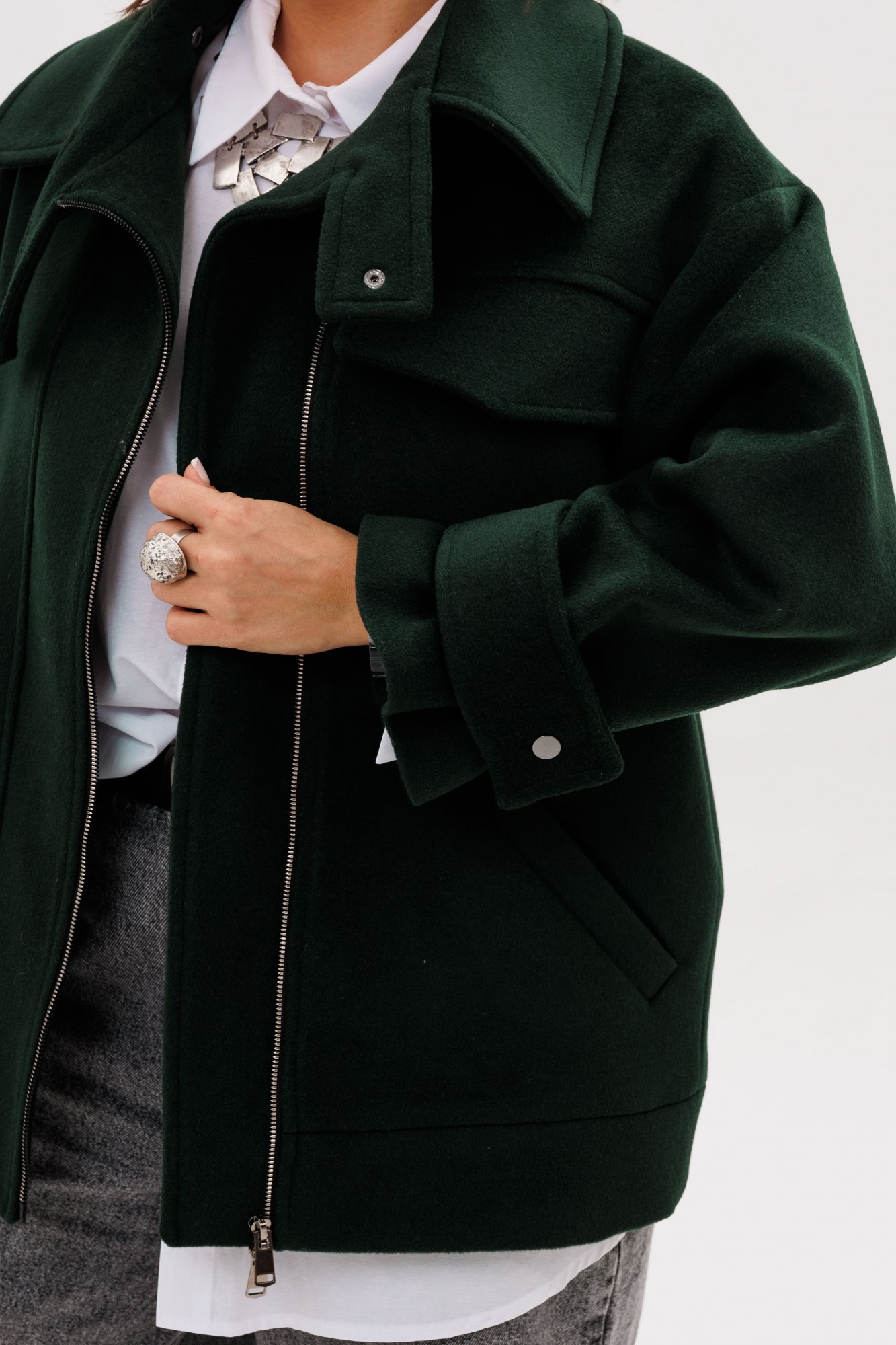 В этом жакете вы будете чувствовать себя невероятно стильно и уютно. Благородный изумрудный цвет подчеркнет вашу индивидуальность, а свободный крой подарит ощущение лёгкости и свободы движений. Вам будет по-настоящему тепло и комфортно в любой день, а безупречный крой и модные детали создадут цельный и выразительный образ, полный уверенности и элегантности.