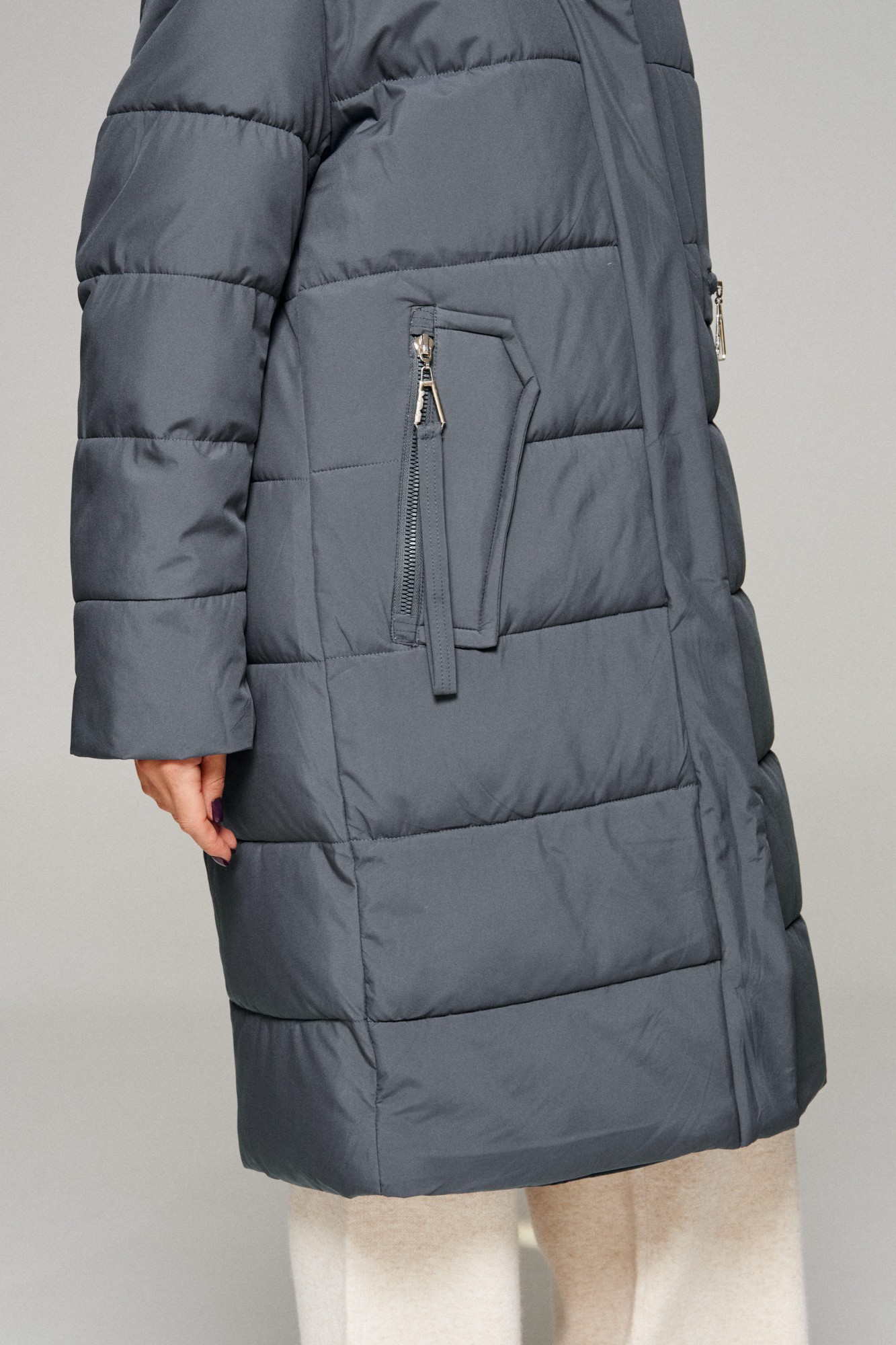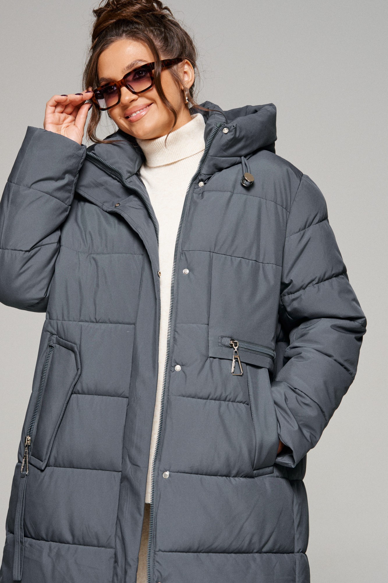 Утепленное, стеганое пальто прямого силуэта для тех, кто ценит комфорт и практичность. Это идеальное сочетание современных материалов и безупречного кроя. Лёгкое, удобное и теплое пальто подходит для зимних образов, сохраняя в себе все необходимые качества соответствующего изделия. Сдержанное, расслабленное, не сковывающее движений, универсального цвета станет незаменимой вещью в гардеробе. Пальто выполнено из прочной, влагостойкой и приятной на ощупь полиэфирной ткани; на синтетической подкладке. Утеплитель холлофайбер 200 г/м. кв. сохраняет тепло в холодное время года. Изделие рассчитано на температурный режим от -10 до -20 градусов. Модель прямого силуэта, базового кроя; предназначена для повседневного использования. Перед с декоративной вставкой на нефункциональную застежку-молнию и прорезными боковыми карманами, один из которых имеет застежку на магнит, а другой на молнию с декоративным хлястиком. Застежка центральная на двустороннюю молнию под ветрозащитной планкой с кнопками. Молния от верхнего края капюшона не доходит до низа изделия на 10 см. Спинка без среднего шва, с отрезными бочками, переходящими на перед. Рукав длинный втачной двухшовный. По низу внутри рукава предусмотрена дополнительная вставка в виде притачной трикотажной манжеты. Воротник стойка прилегает к шее и создает особое удобство при носке. Капюшон закрытого типа, притачной по горловине. По периметру капюшона протянут шнур в цвет изделия с декоративными фиксаторами. Низ изделия ровный. Подкладка гладкая, слева предусмотрен внутренний карман.
