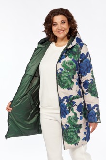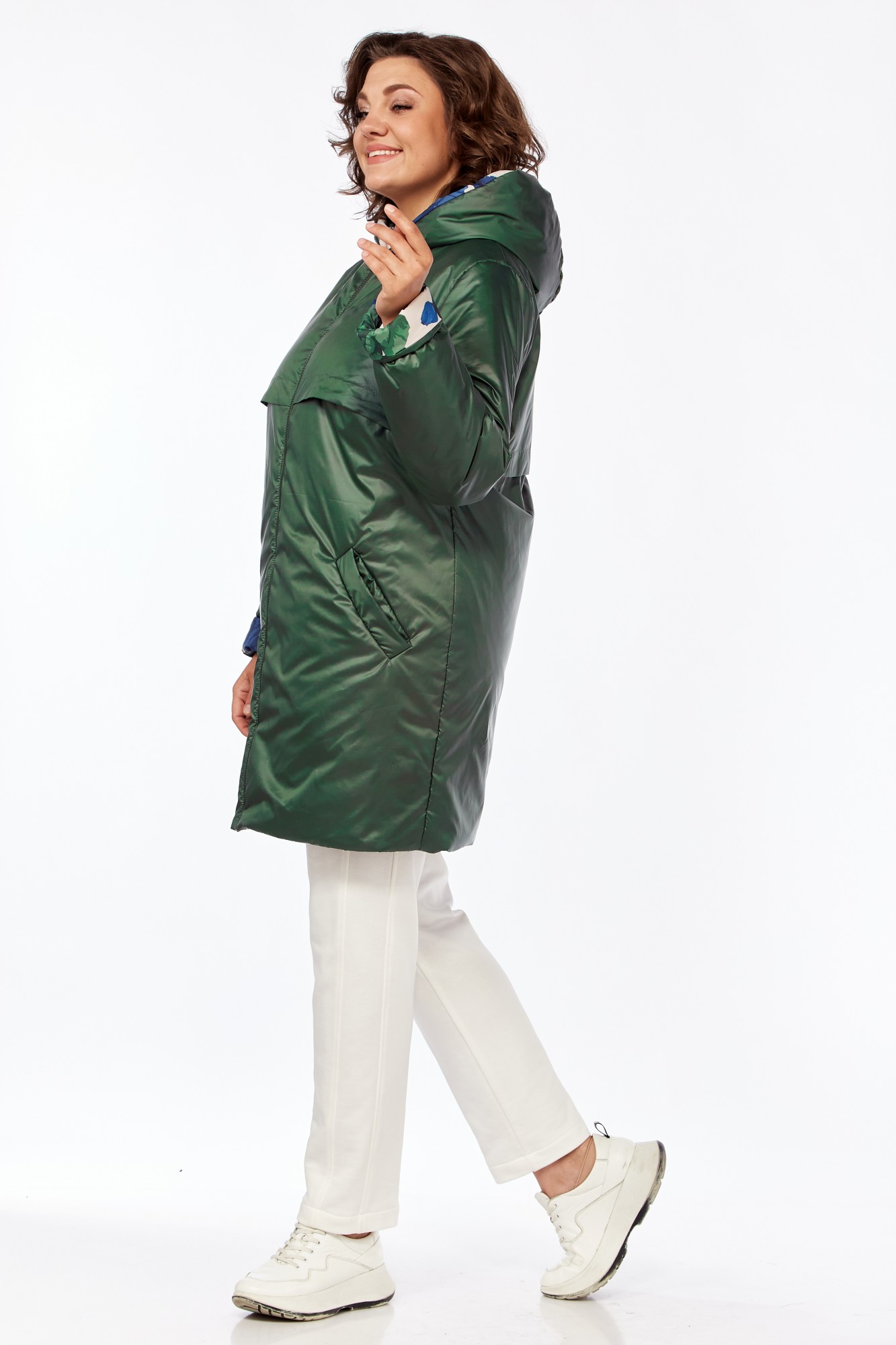 Куртка женская, прямого силуэта с центральной застёжкой на тесьму-молнию, двусторонняя используется две ткани. Лицевая сторона: по переду обработаны карманы с листочкой, отлетные кокетки, по спинке отлетная кокетка. Вторая сторона: по переду нагрудные вытачки, карманы накладные. Рукав втачной одношовный. Капюшон с центральной частью.