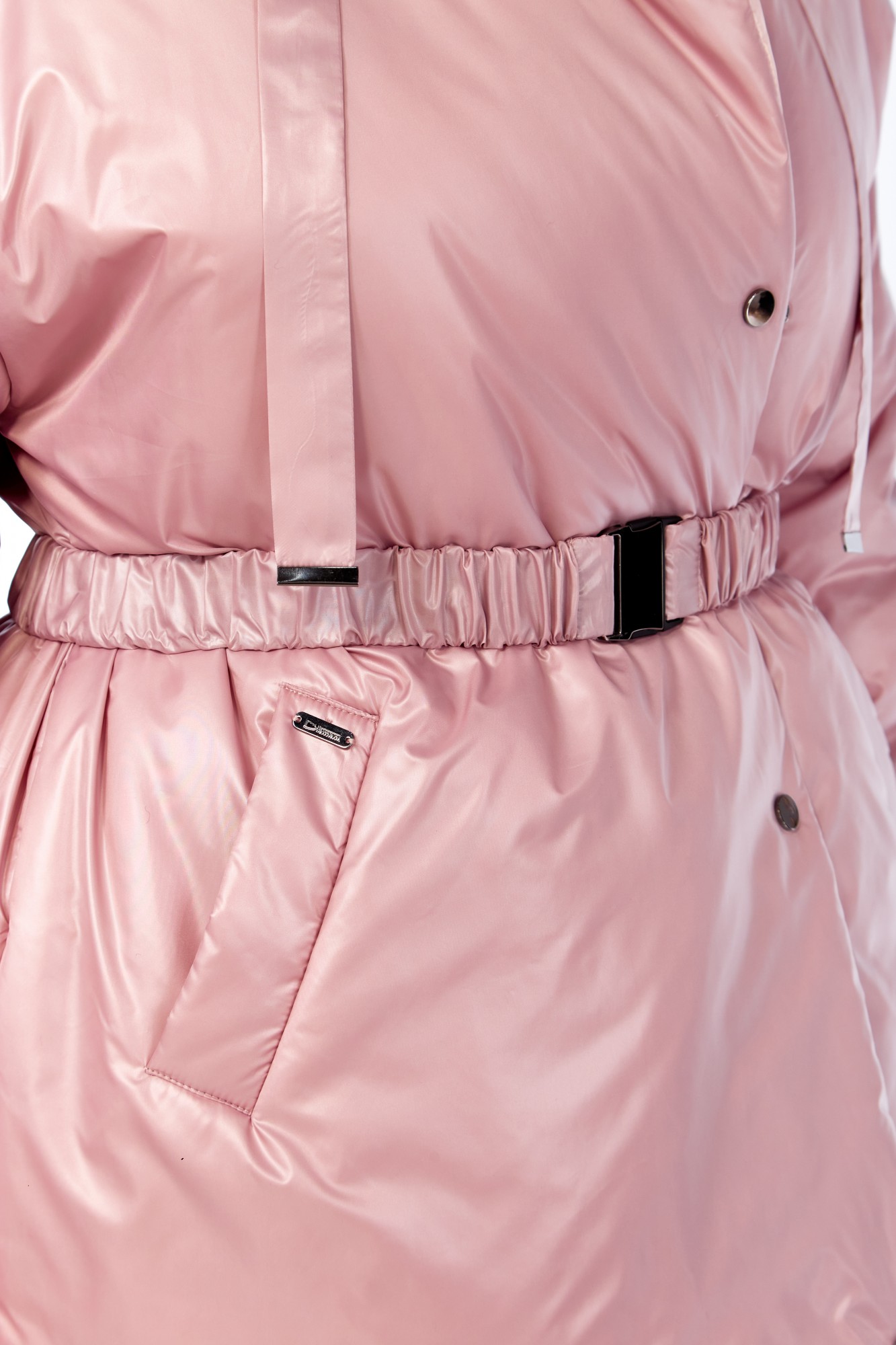 Куртка женская двухсторонняя с центральной бортовой застежкой на кнопки. Спинка простая. Перед с боковыми карманами с одной стороны "с листочкой", а внутренняя сторона с карманами в боковых швах. Рукав втачной одношовный со спущенной линией плеча. Воротник-капюшон с кулисой. Есть пояс на резинке с застежкой на пряжку. Куртка утепленная. Температурный режим до - 10 градусов. Фурнитура может отличаться от заявленной на фото.