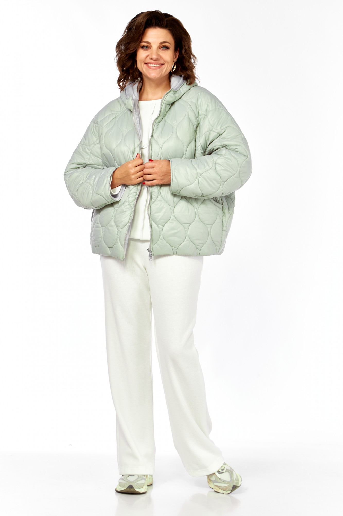 Куртка женская, О-образного силуэта с центральной застежкой на молнию. Спинка простая. Перед с боковыми карманами "с листочкой". Рукав-реглан . Воротник-капюшон. По низу куртки в подкладке обработана кулиса со шнуром и регулятором. Куртка на утеплителе. Температурный режим до -5 градусов.