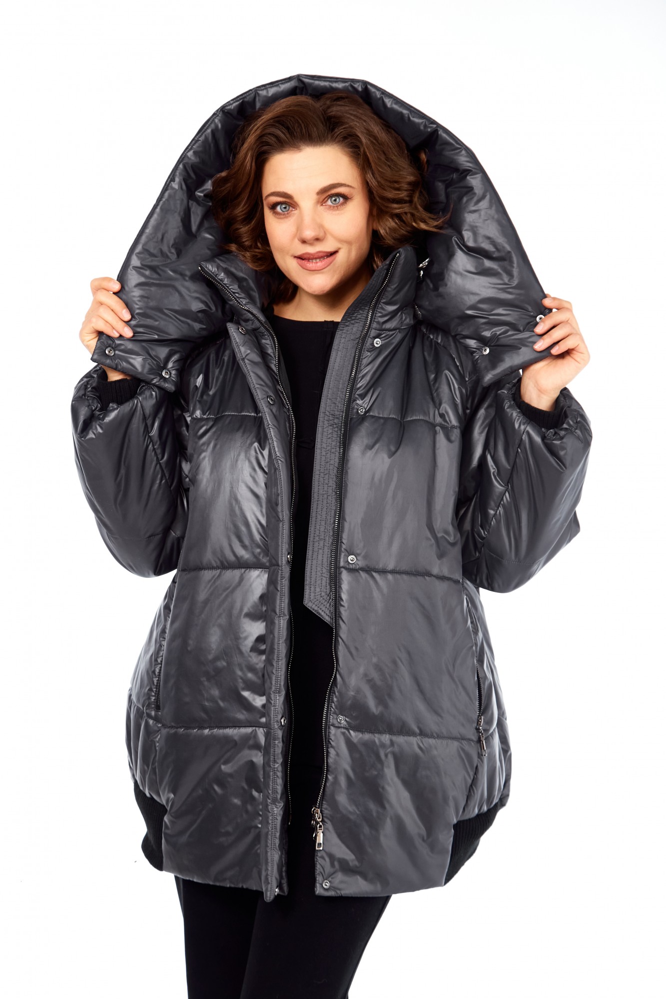 Куртка женская, прямого силуэта с рукавом реглан. Застежка центральная на тесьму молнию и планку с кнопками. По спинке рельефные швы. По переду рельефные швы, в швах карманы с молнией и отделочной деталью, по низу боковых швов-довяз. Рукав реглан с вытачкой и манжетом(довяз)- по низу. Воротник стойка. Капюшон с центральной частью, с отделочной деталью по отлету (застежка на кнопки)-съемный, фиксируется с помощью кнопок. На центральной части под молнией -ветровик. В качестве отделки используется фурнитура и детали. Температурный режим до -10 градусов.
