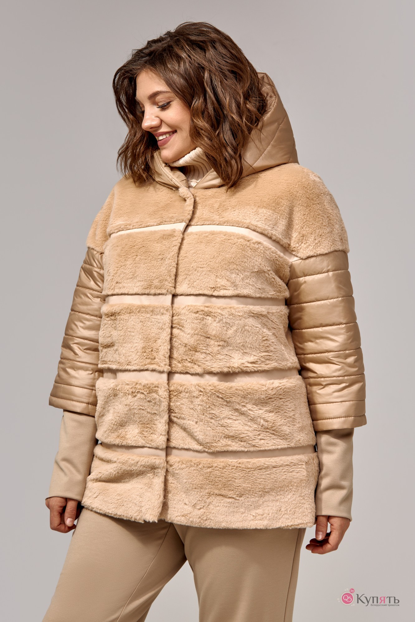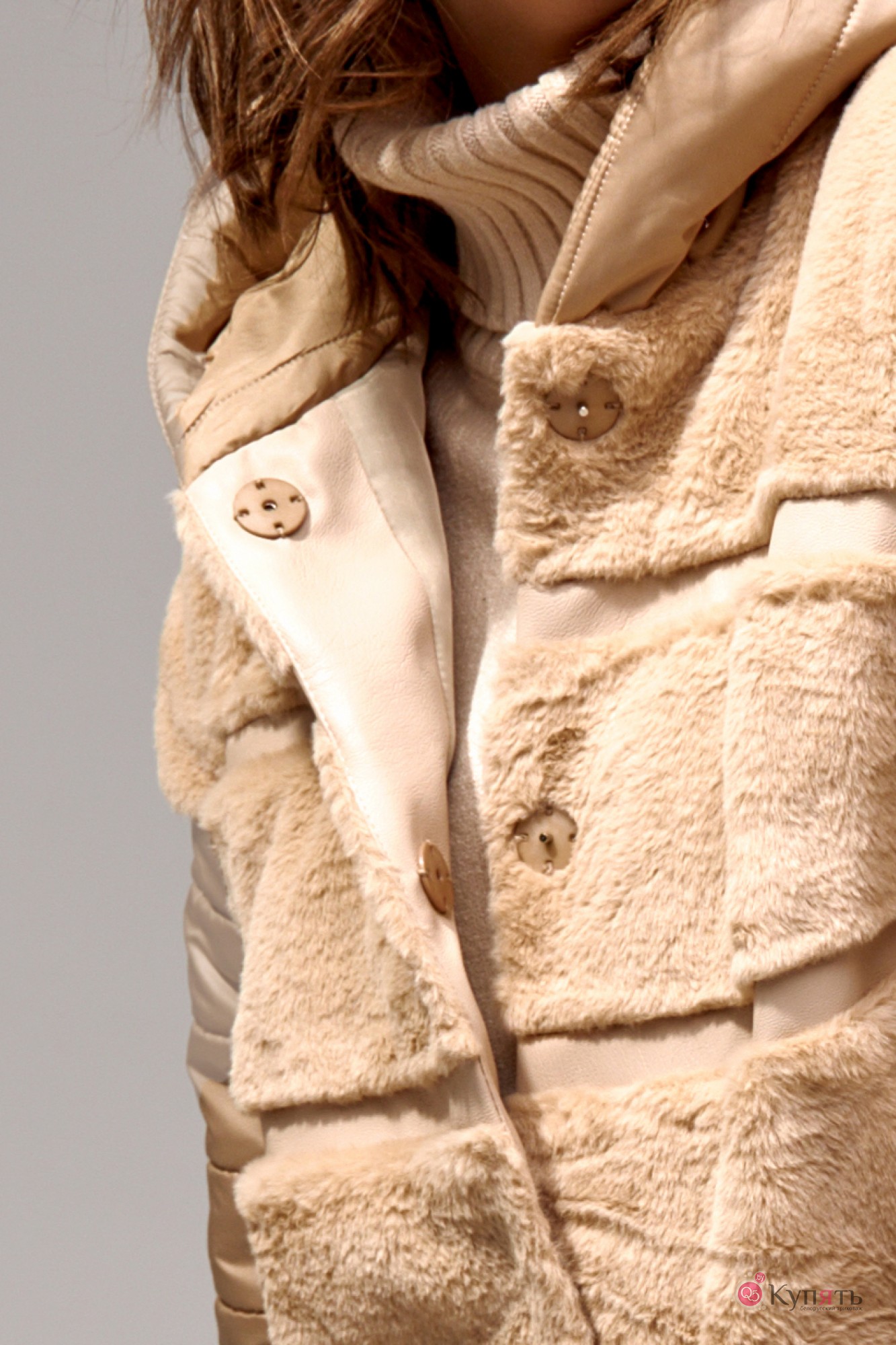 Искусственный мех: 70% вискоза, 30% п/э; Ткань плащевая стеганная 100% п/э; Подкладка 100% п/э