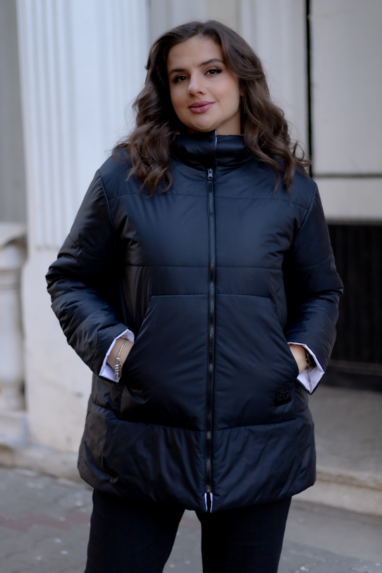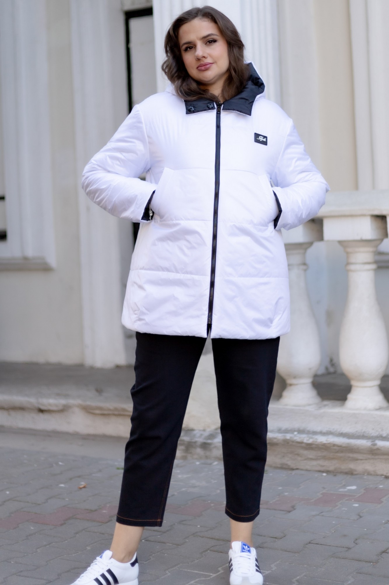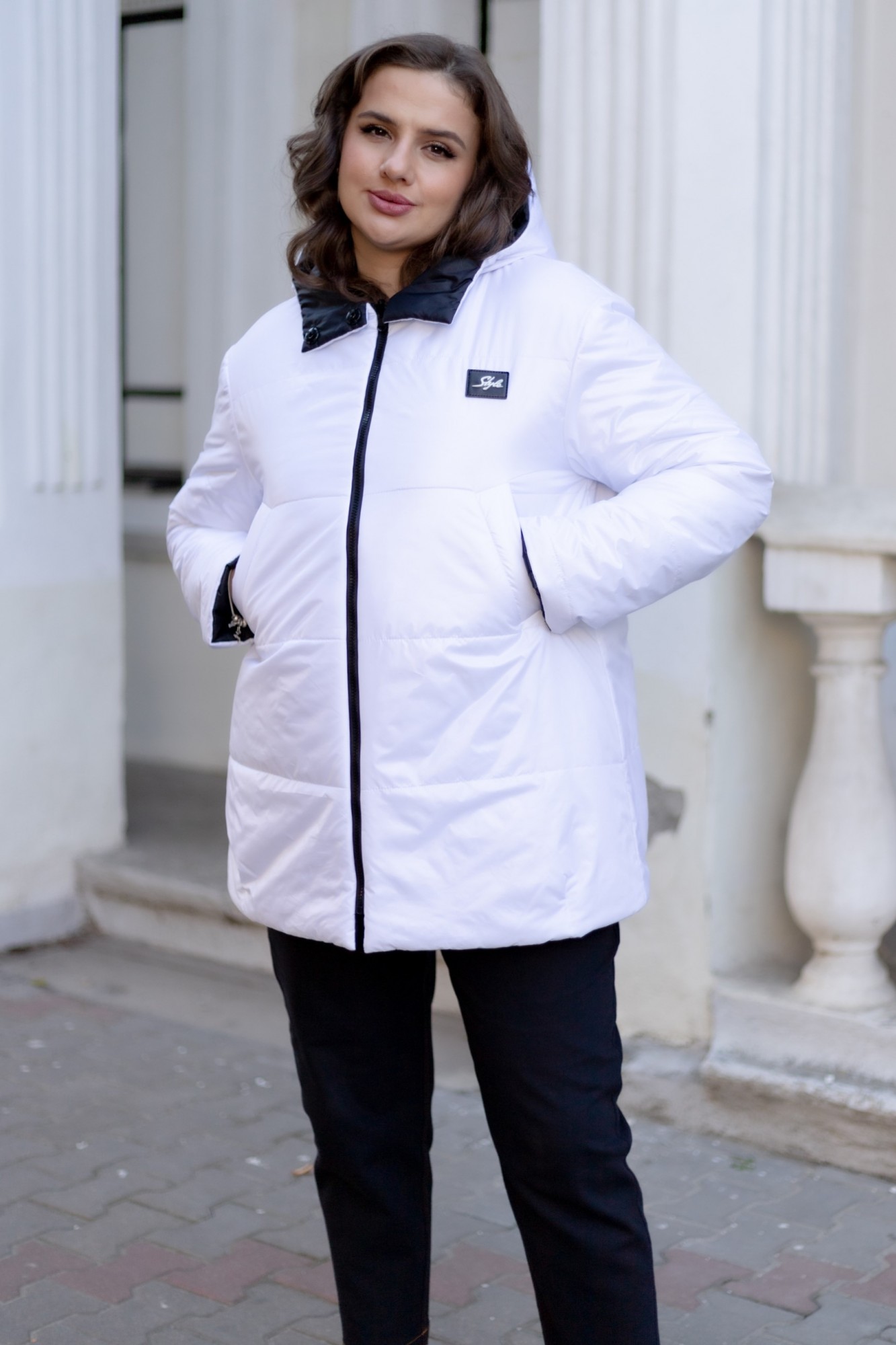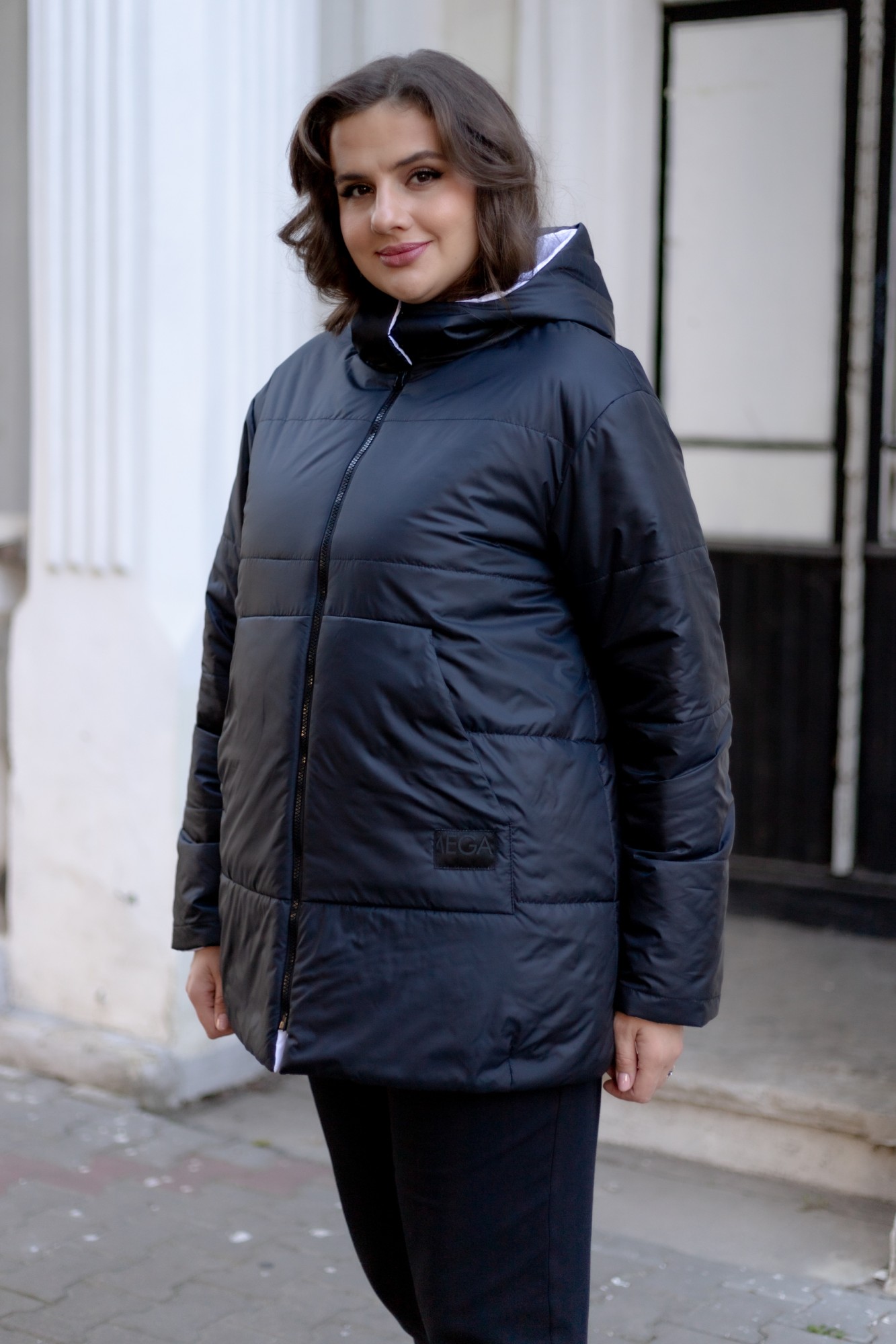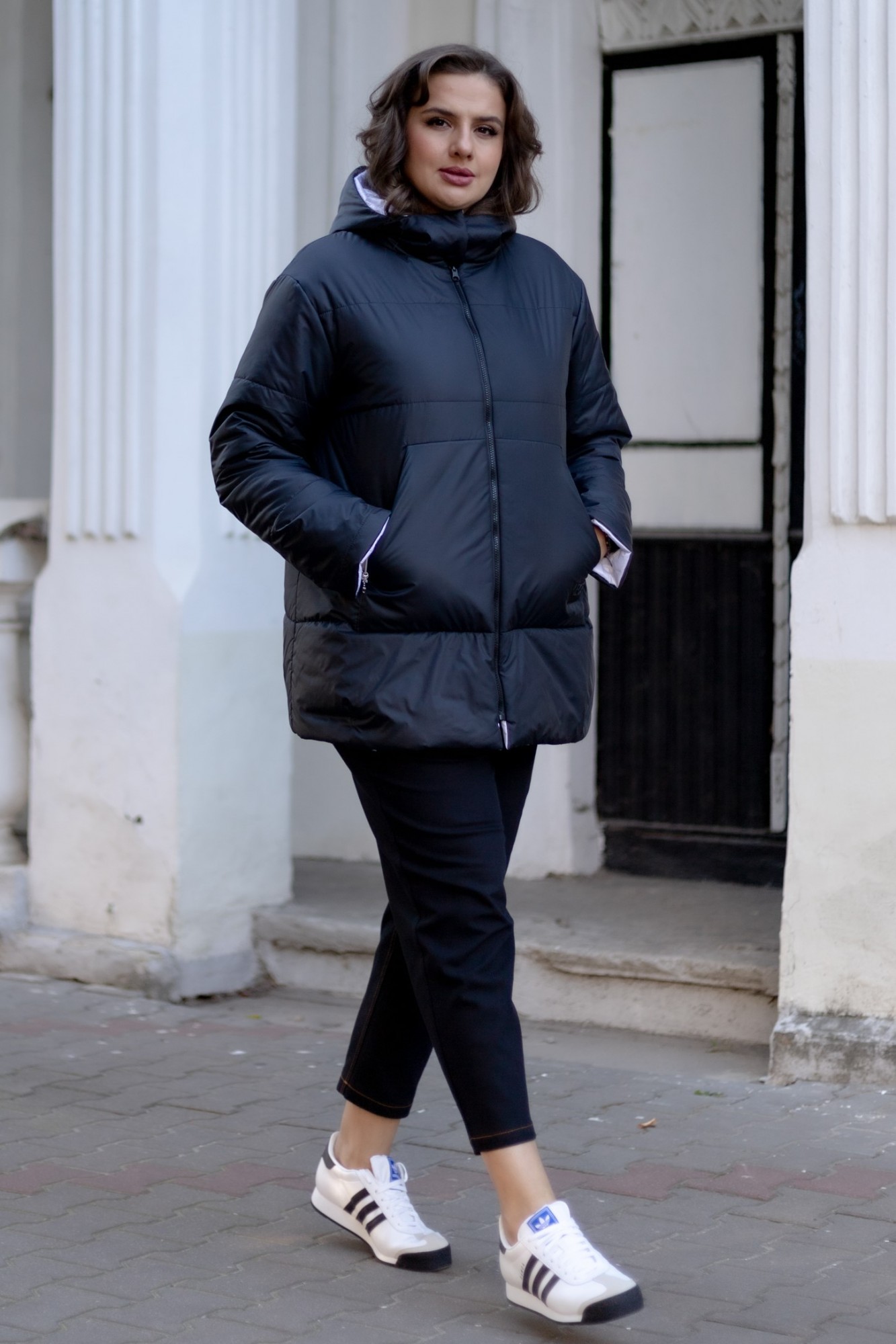 Куртка женская прямого силуэта, утеплённая, двухсторонняя. Изделие прямого силуэта с одношовными втачными рукавами, с капюшоном, с застёжкой спереди на молнию. С каждой из сторон куртки по переду выполнены карманы. Утеплитель HOOPON 200 гр/м2, рекомендуется для эксплуатации при температуре +5 / -10 градусов (стоит учитывать индивидуальную восприимчивость к холоду).