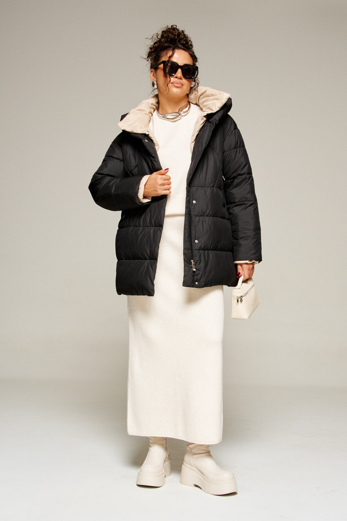 Современный объёмный крой и спущенная линия плеч создают расслабленный актуальный силуэт. А широкий воротник играет роль дизайнерского акцента.