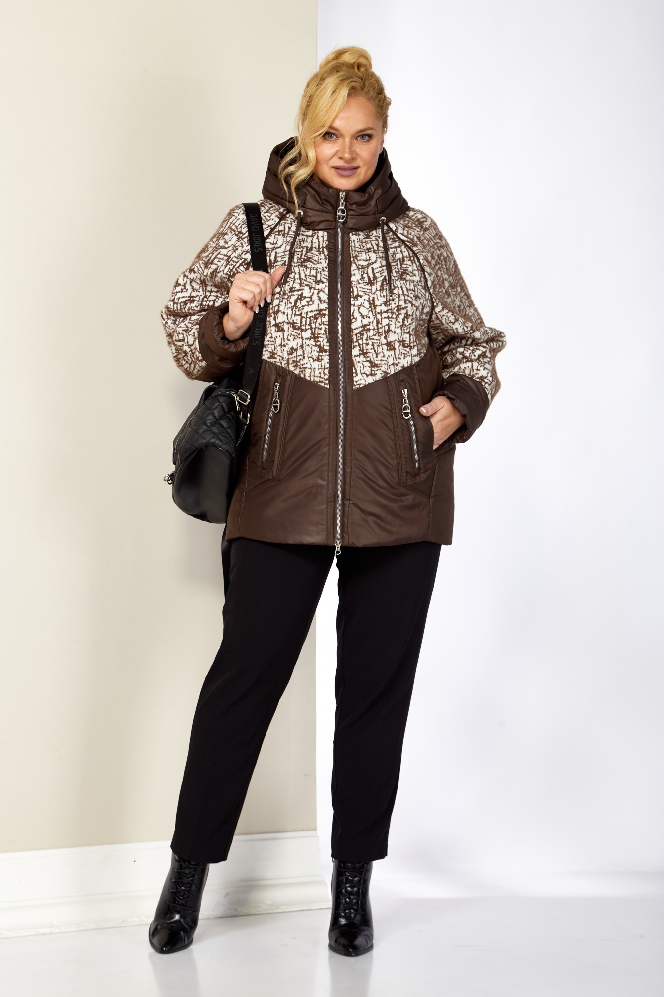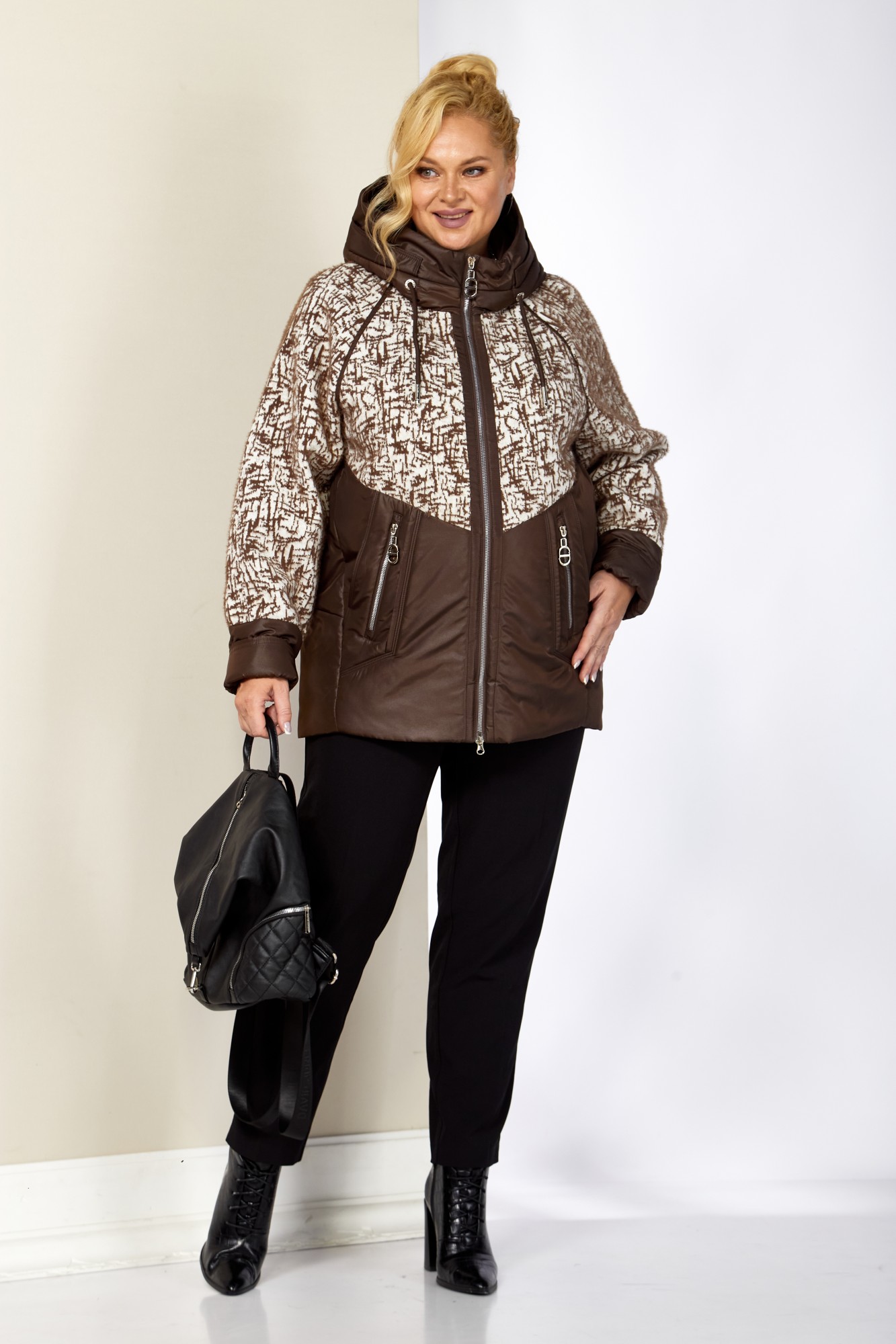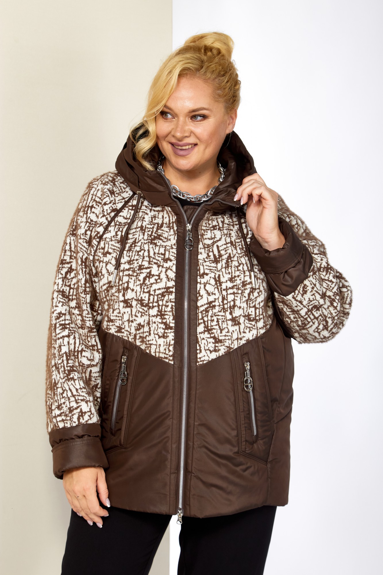 Женская демисезонная куртка сезона осень-весна, прямого силуэта, с воротником-стойкой переходящим в капюшон. Куртка повседневная удобная в носке, лёгкая в уходе и теплая. Застежка центральная на молнии (двухбегунковая). Изделие выполнено из курточной ткани высокого качества, на тонком мягком синтепоне. На подкладке. Передняя часть куртки с прорезными карманами на внутренних магнитах и карманами обманкой на молнии с декоративной подвеской. Рукав реглан. Капюшон не съемный, регулируется декоративным шнуром. Фигурная передняя кокетка и рукава выполнены с отделочной ткани из плотного мягкого трикотажа. С внутренней стороны куртки имеется внутренний карман. Спинка с рельефными швами и нижней отрезной кокеткой. Комфортный прямой крой, с идеальной посадкой на любую фигуру, выгодно подчеркнет любой силуэт и создаст неповторимый образ.