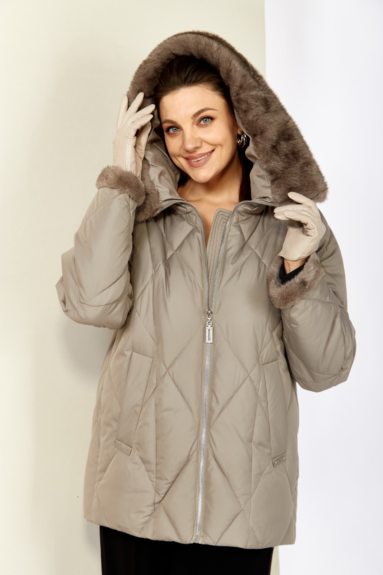Уютная, элегантная зимняя куртка станет любимой вещью Вашего гардероба! Куртка выполнена из мягкой, матовой курточной ткани с водоотталкивающим эффектом. На качественной сатиновой подкладке из поливискозы. В качестве утеплителя используется «Холлофайбер» (специально разработан для зимних курток) производство Бельгия с плотностью 200 г/кв.м.. Утеплитель по своим характеристикам легкий и прекрасно держит тепло. По переду прорезные карманы с декоративным элементом на магнитах. Рукав реглан. Застежка центральная на тесьму-молнию. Капюшон и отвороты рукавов выполнены из меха, максимально по внешнему виду приближенного к натуральному «Норка», что придает изделию элегантность.