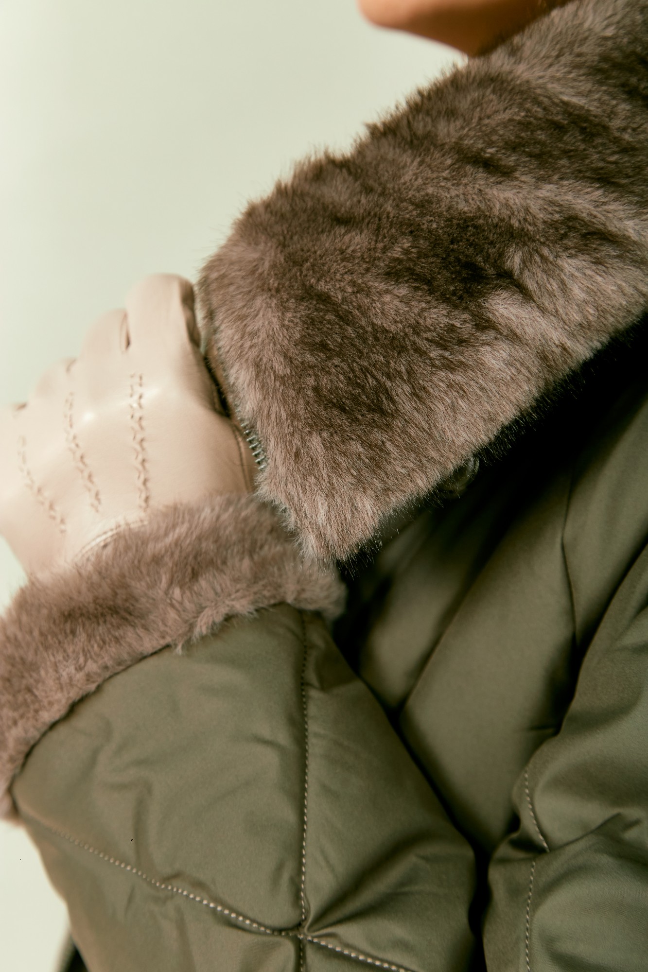 Материал сохраняет свои качества после стирки, быстро сохнет, имеет большую воздухопроницаемость. Благодаря дорогой и качественной фурнитуре, а также отделки из эко-меха норки, изделие смотрится дорого и элегантно.