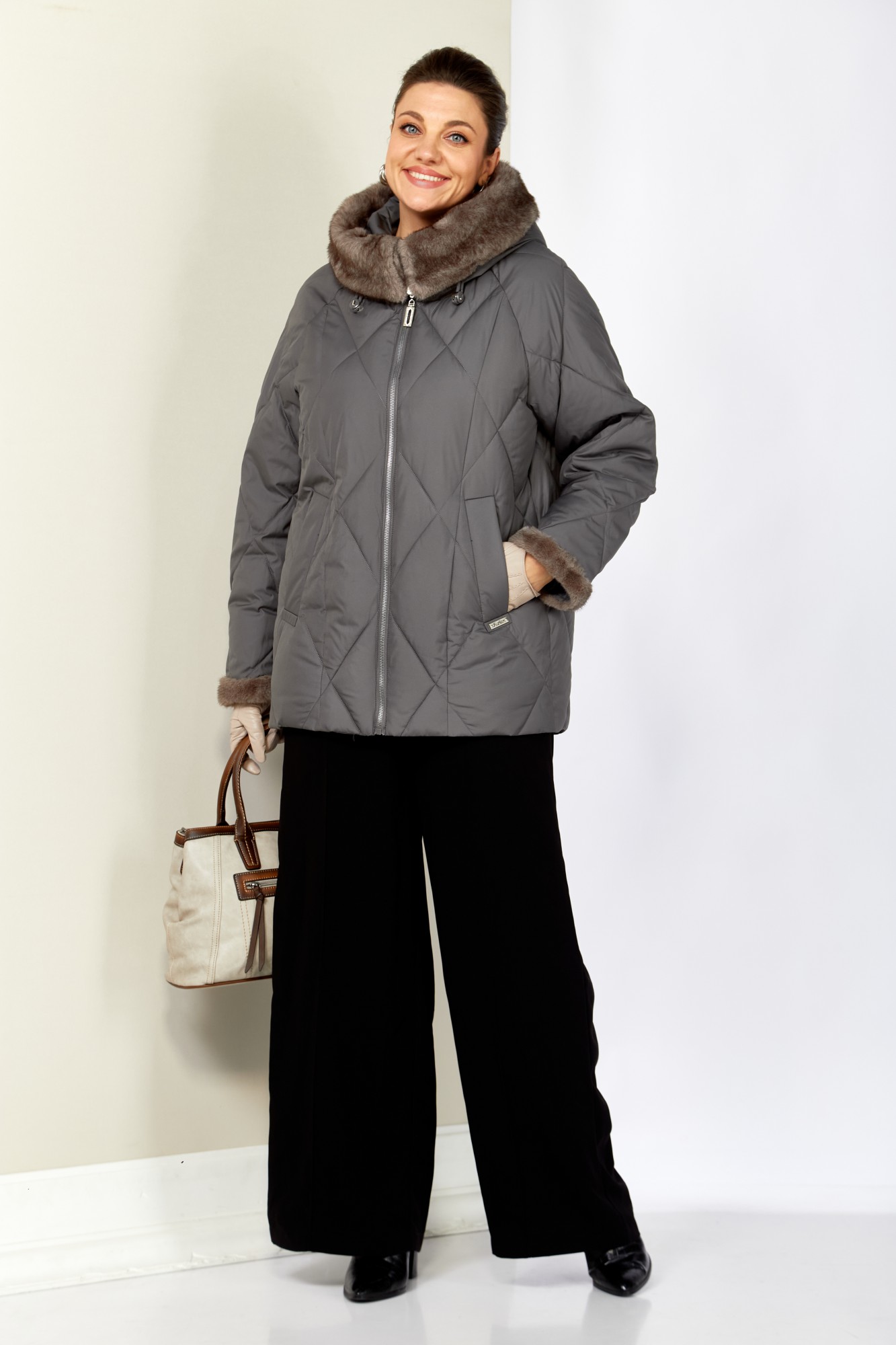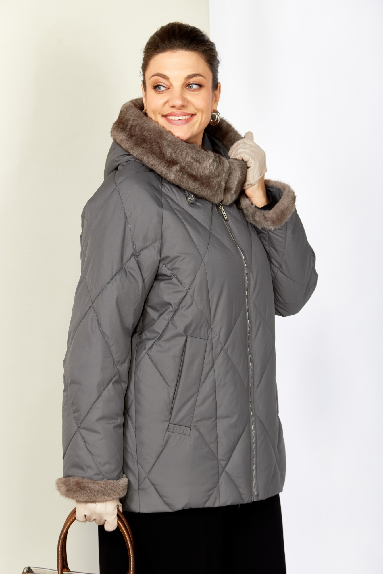 Уютная, элегантная зимняя куртка станет любимой вещью Вашего гардероба! Куртка выполнена из мягкой, матовой курточной ткани с водоотталкивающим эффектом. На качественной сатиновой подкладке из поливискозы. В качестве утеплителя используется «Холлофайбер» (специально разработан для зимних курток) производство Бельгия с плотностью 200 г/кв.м.. Утеплитель по своим характеристикам легкий и прекрасно держит тепло. По переду прорезные карманы с декоративным элементом на магнитах. Рукав реглан. Застежка центральная на тесьму-молнию. Капюшон и отвороты рукавов выполнены из меха, максимально по внешнему виду приближенного к натуральному «Норка», что придает изделию элегантность.