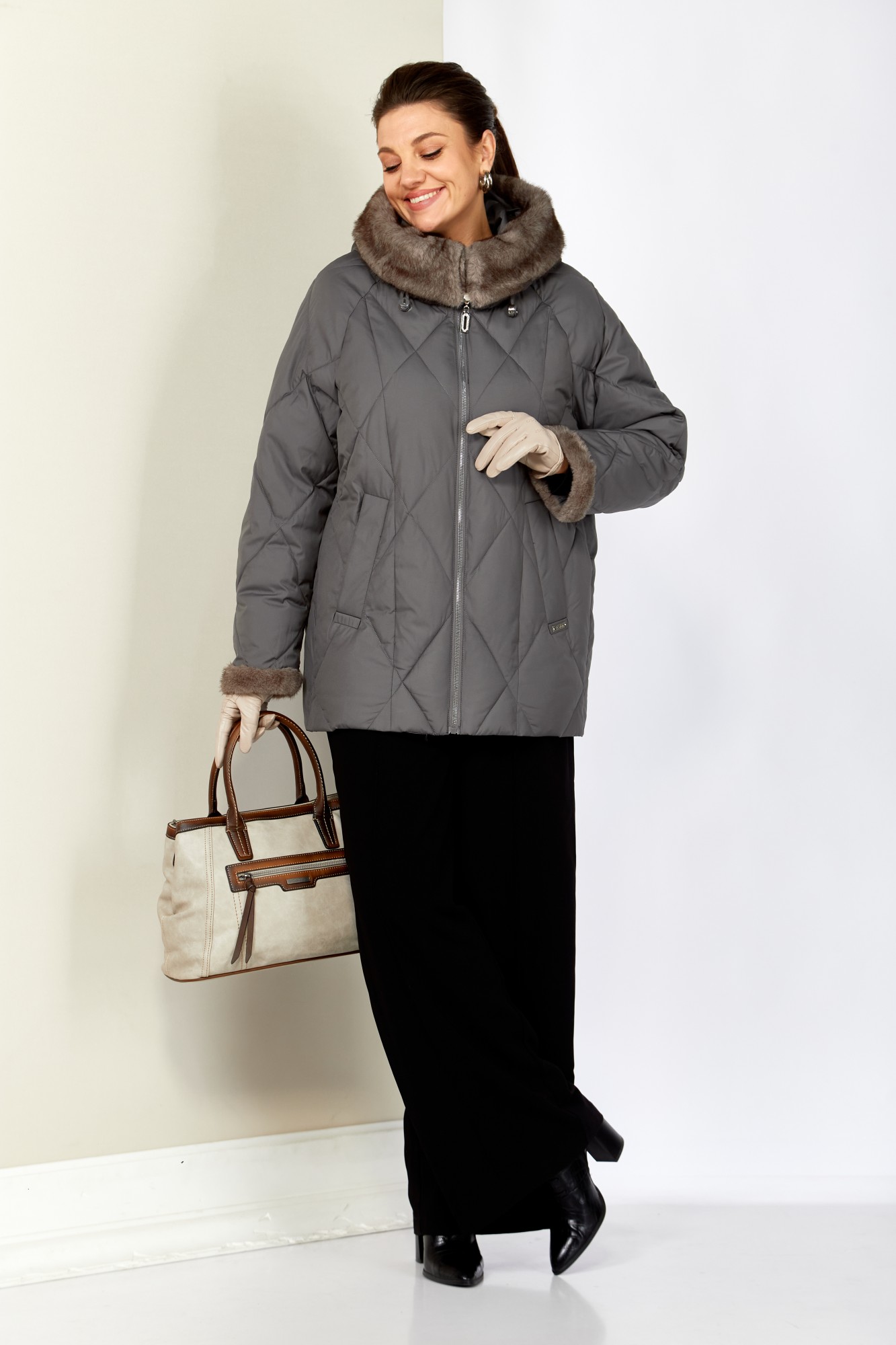 Материал сохраняет свои качества после стирки, быстро сохнет, имеет большую воздухопроницаемость. Благодаря дорогой и качественной фурнитуре, а также отделки из эко-меха норки, изделие смотрится дорого и элегантно.