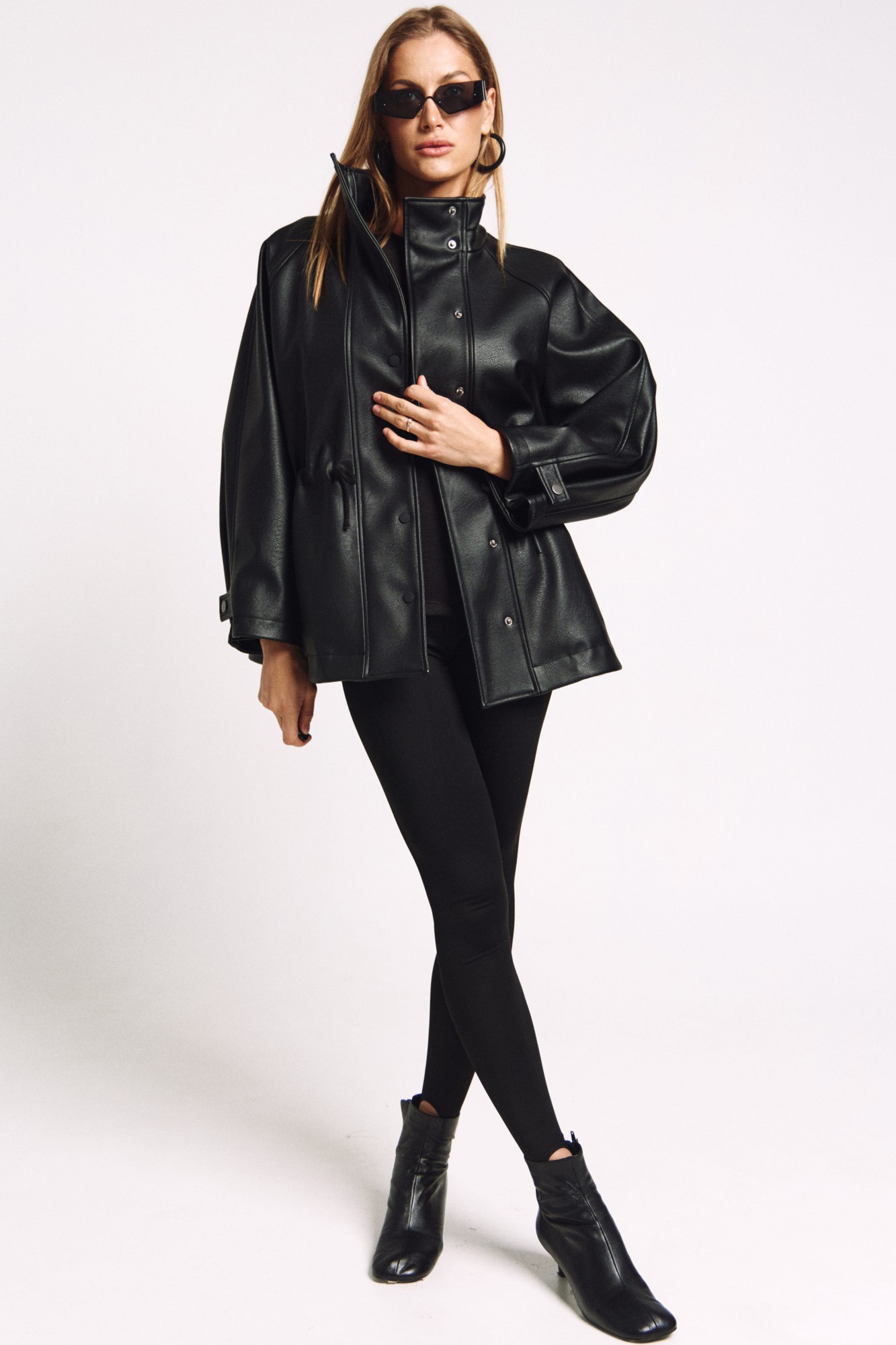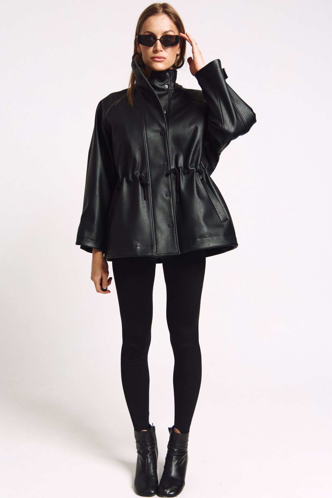 Утепленный кожаный жакет-парка со стойкой. Широкий рукав, ширина которого регулируется кнопками. Очень плотная экокожа. Хорошо держит форму. Подкладка утеплена Isosoft 100. Два универсальных размера - S (соответствует 42-44-46), L (соответствует 48-50-52).