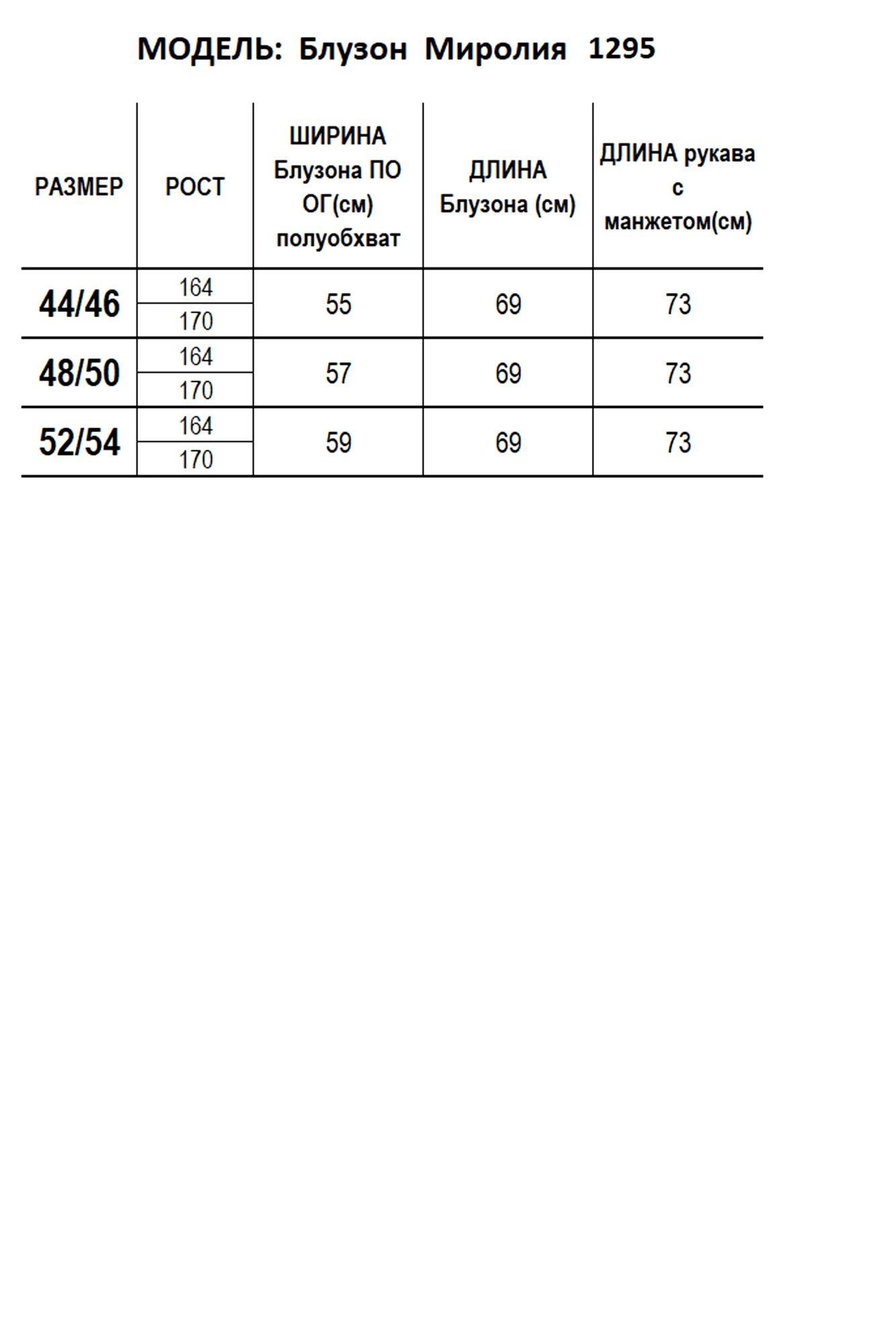 Таблица размеров